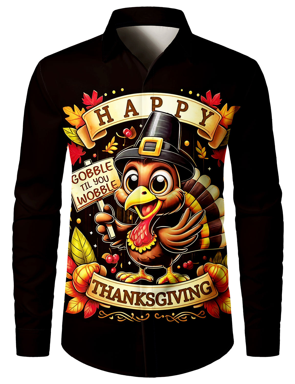 Men's Thanksgiving Holiday Turkey Funny Cotton Long Sleeve Shirt