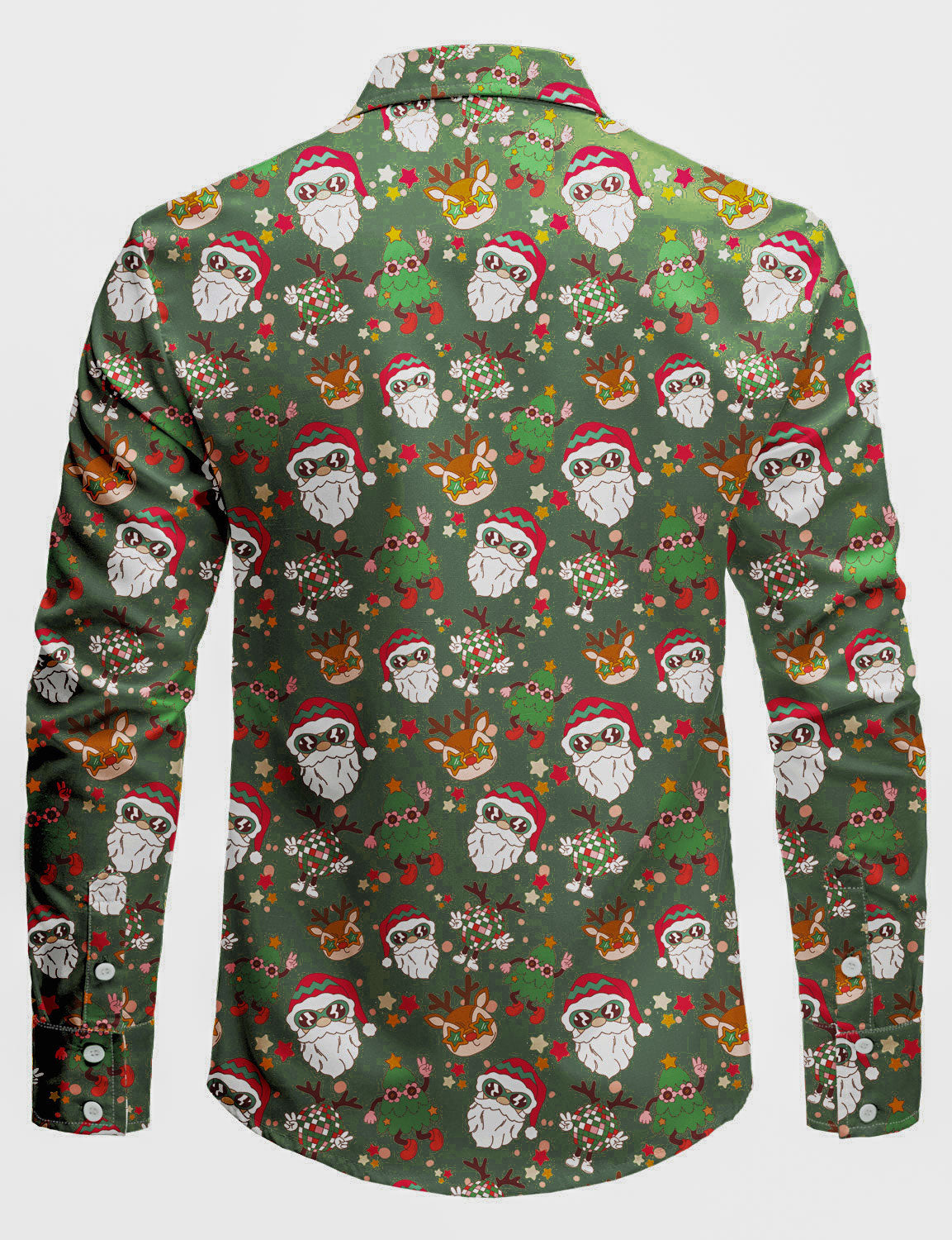 Men's Disco Santa Claus Christmas Reindeer Funny Print Long Sleeve Shirt