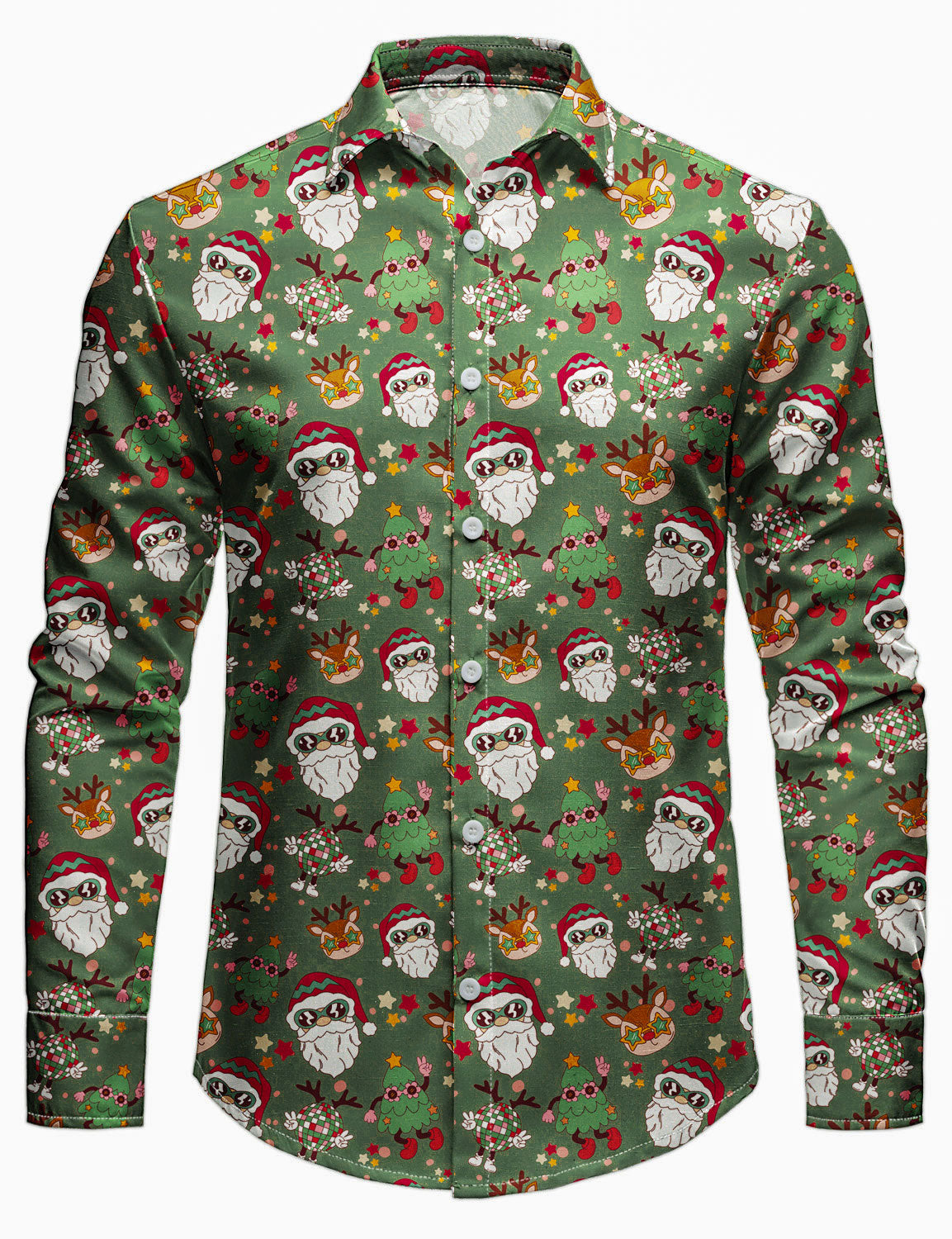 Men's Retro Christmas Style Green Long Sleeve Shirt