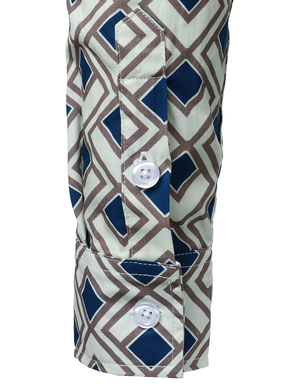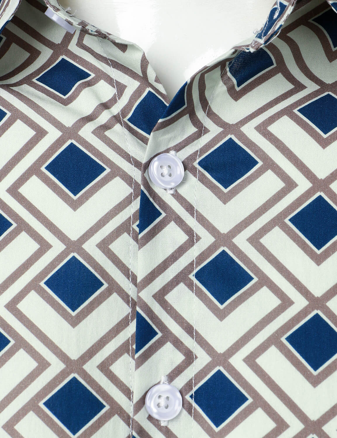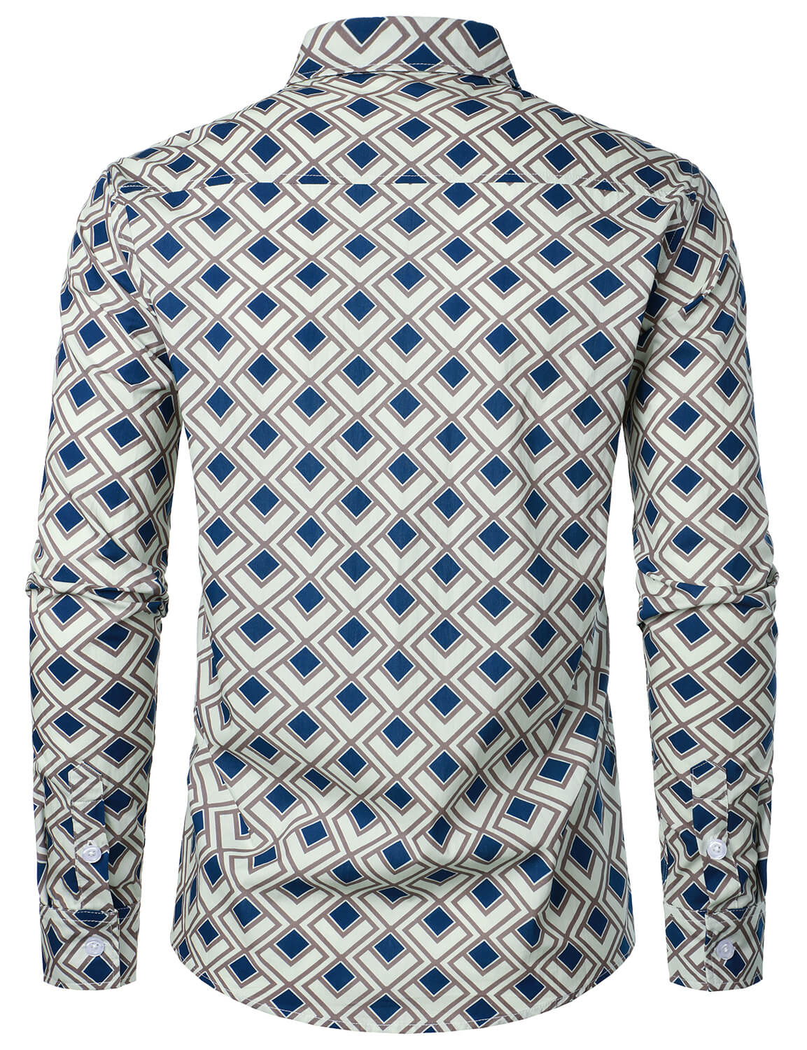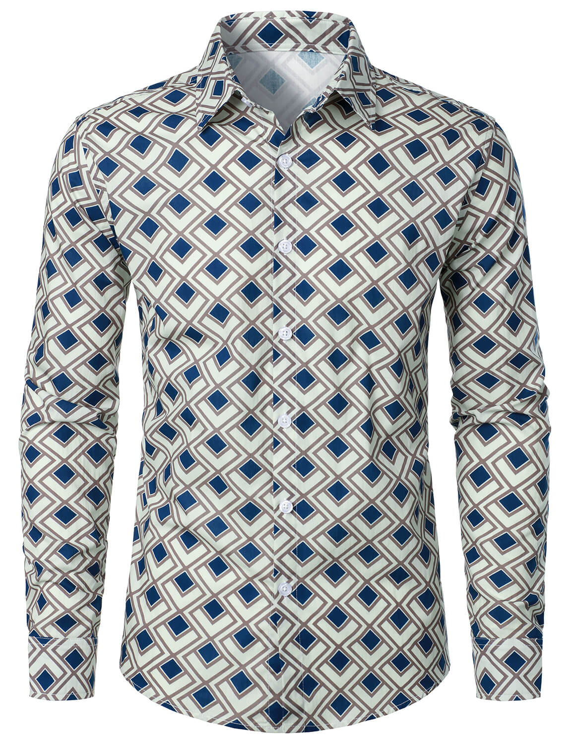 Men's Cotton Casual Geometric Button Up Long Sleeve Shirt