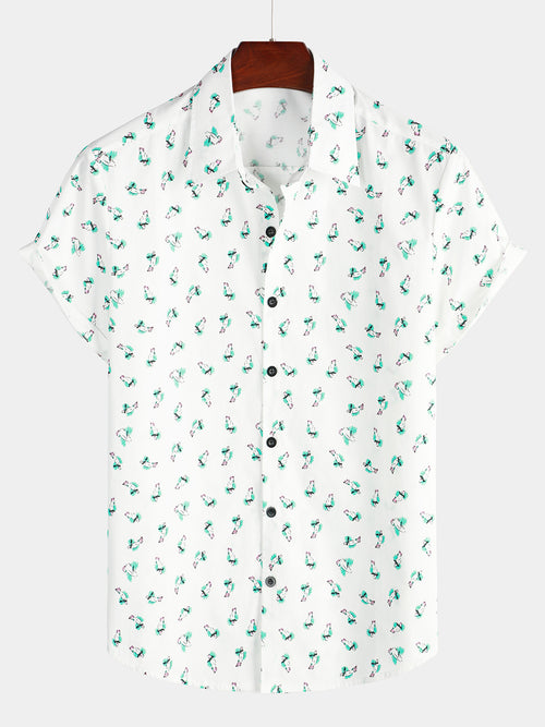 Men's Casual Cotton Flamingo Print Short Sleeve Shirt