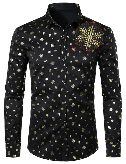Men's Golden Christmas Snowflake Print Long Sleeve Shirt