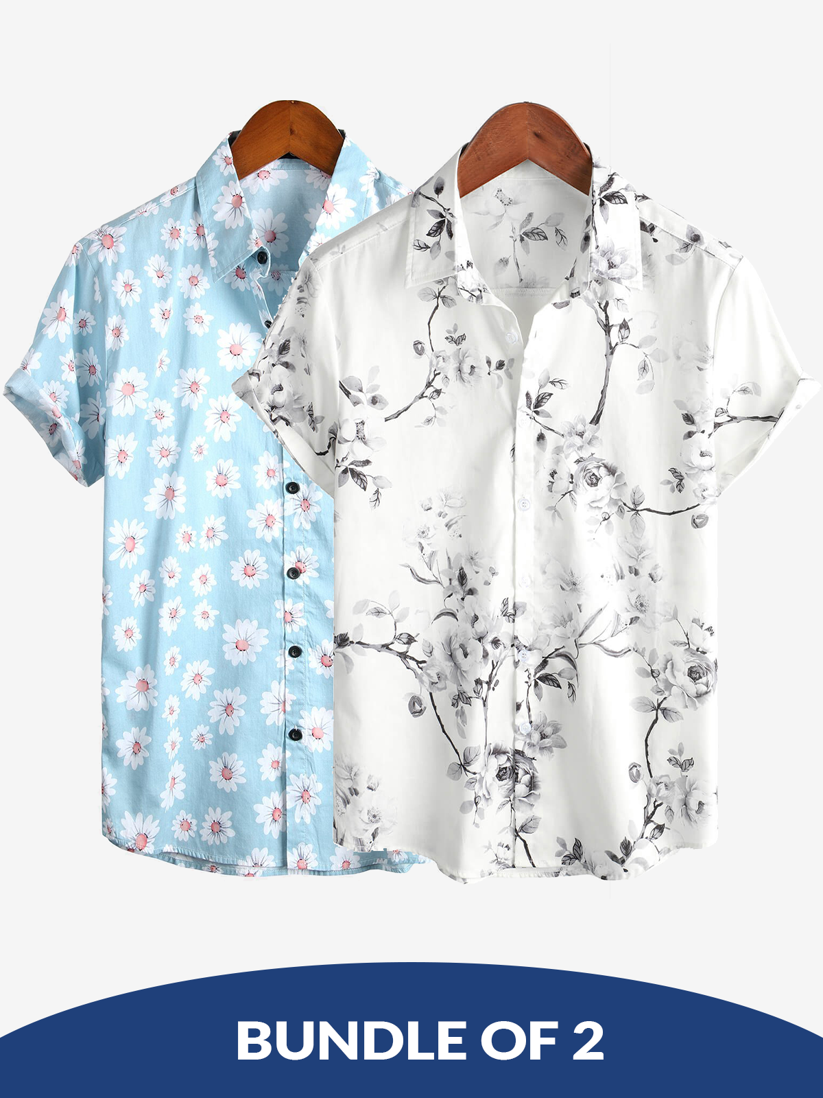 Bundle Of 2 | Men's Floral White & Blue Beach Hawaiian Shirt