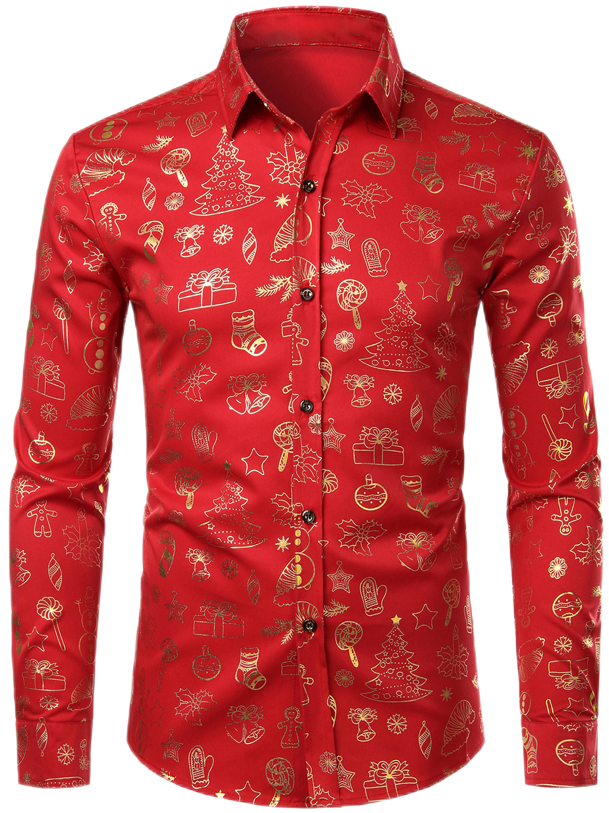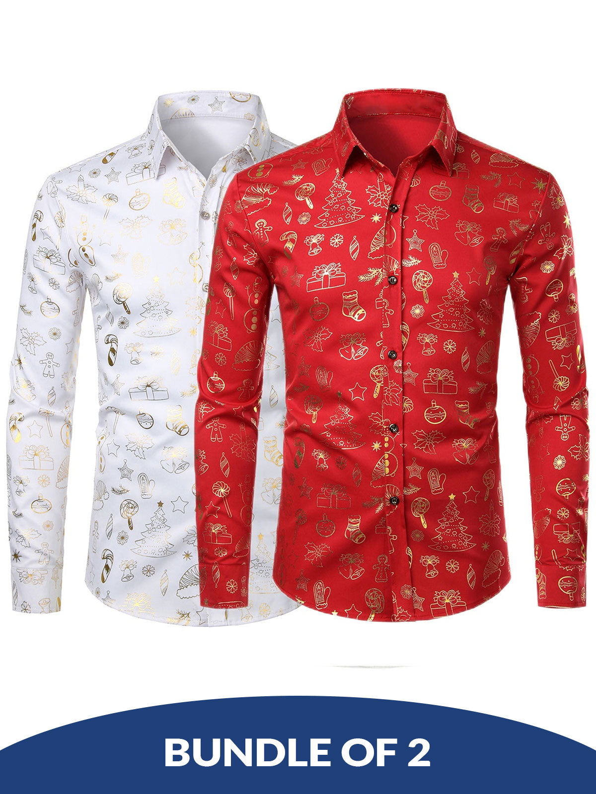 Bundle Of 2 | Men's Regular Fit Christmas Print Long Sleeve Shirt