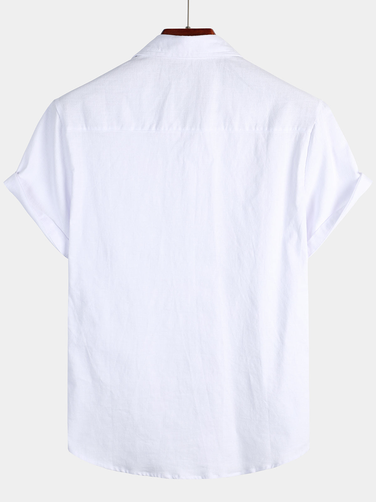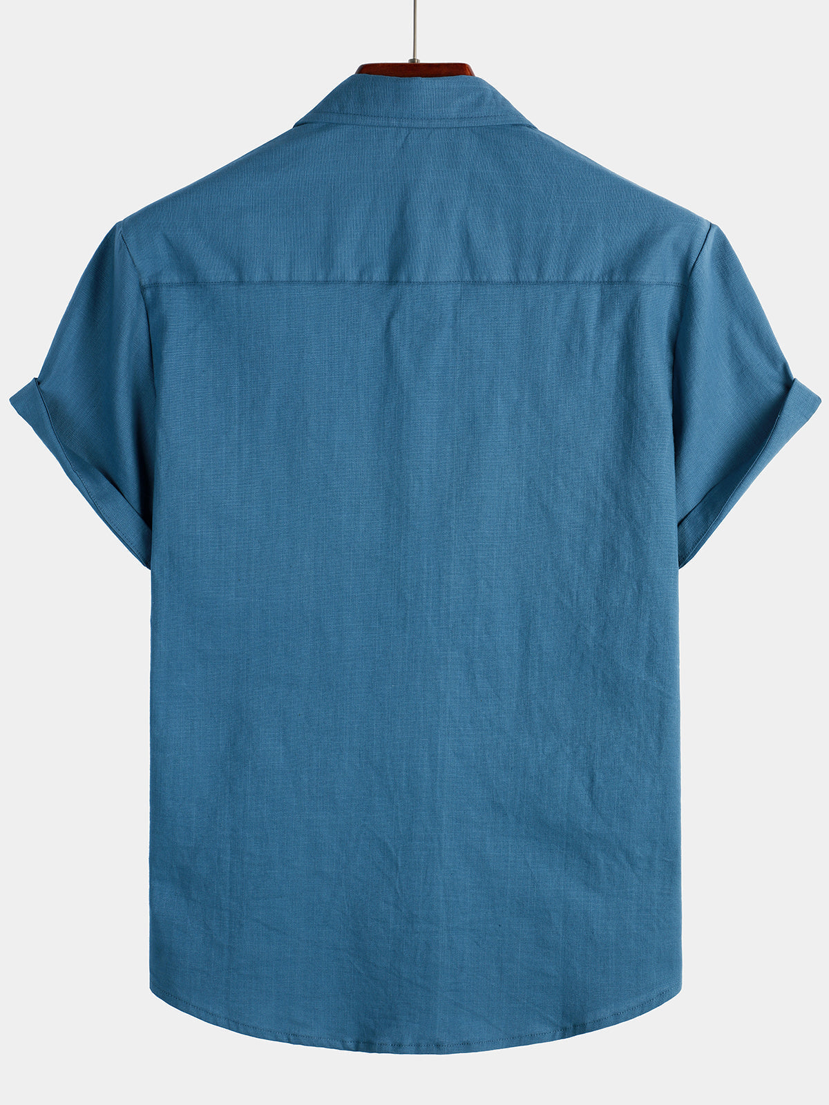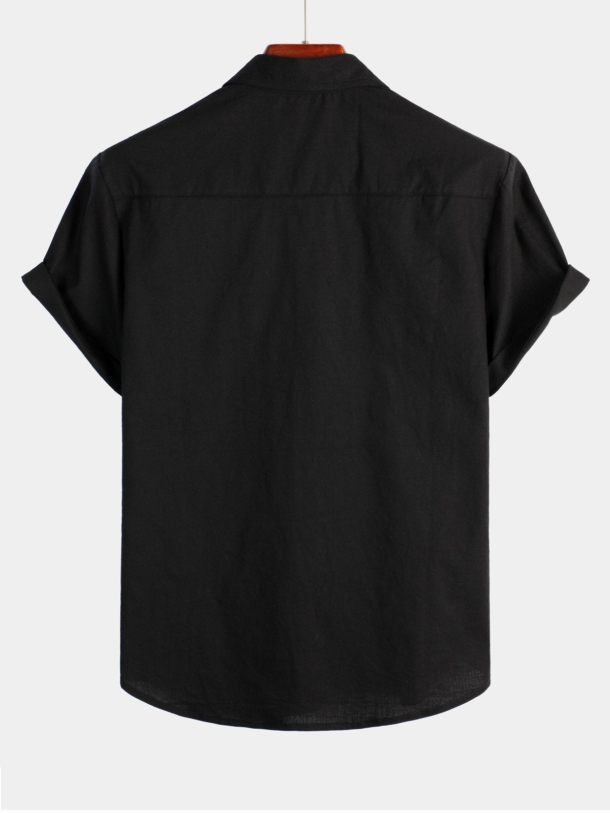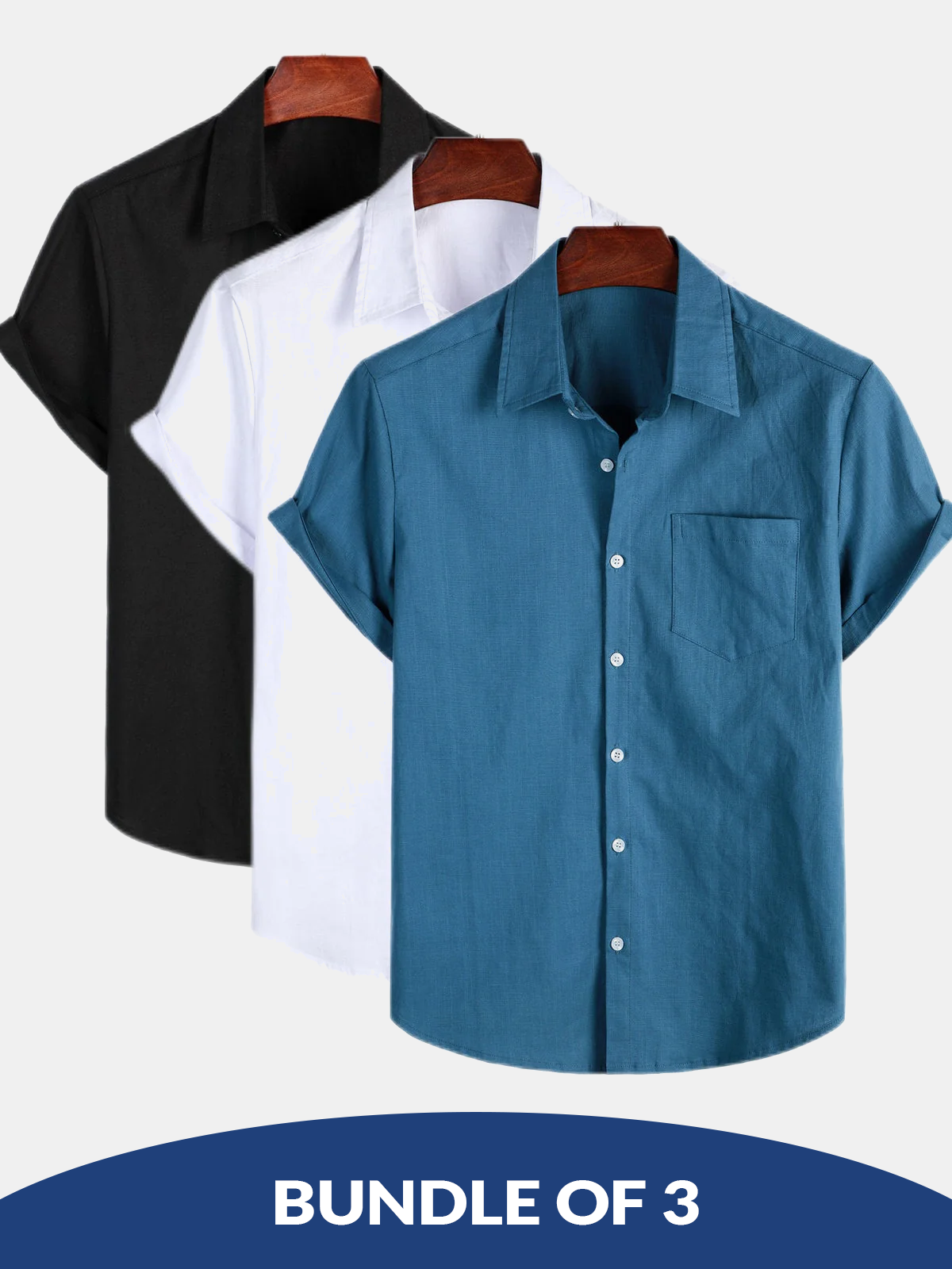 Bundle Of 3 | Men's Linen Cotton Pocket Solid Color Casual Short Sleeve Shirts