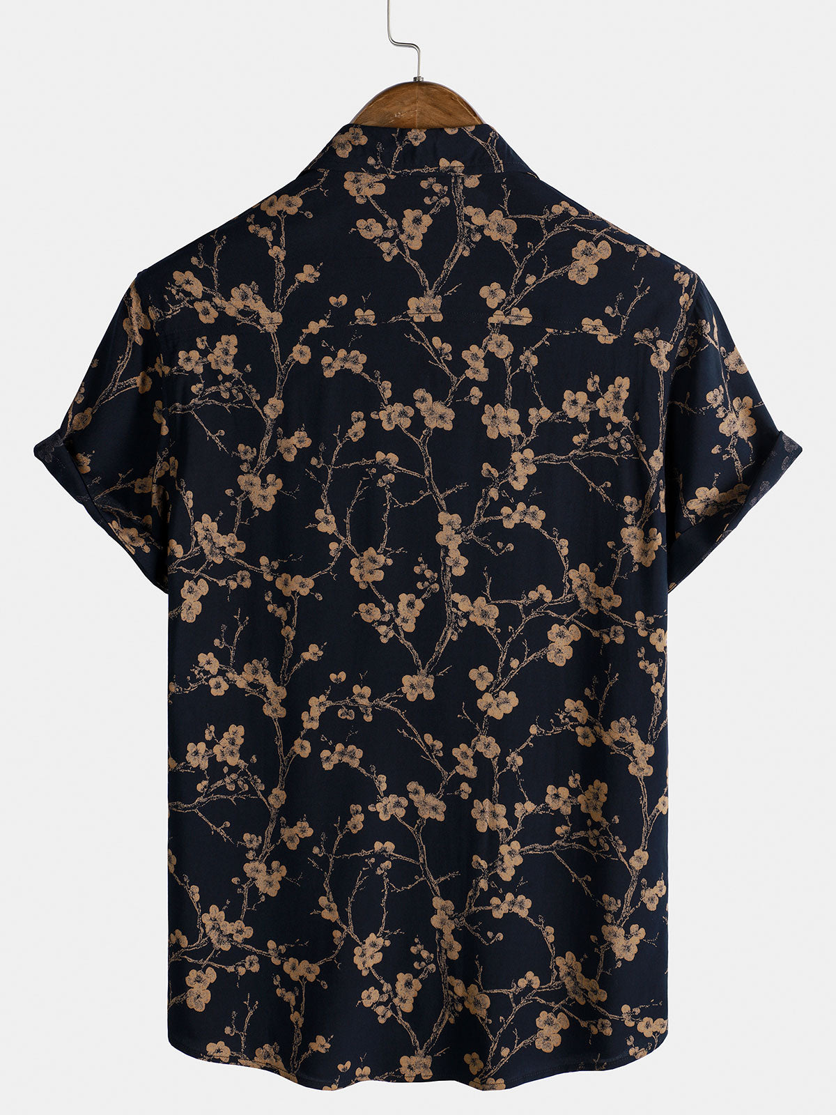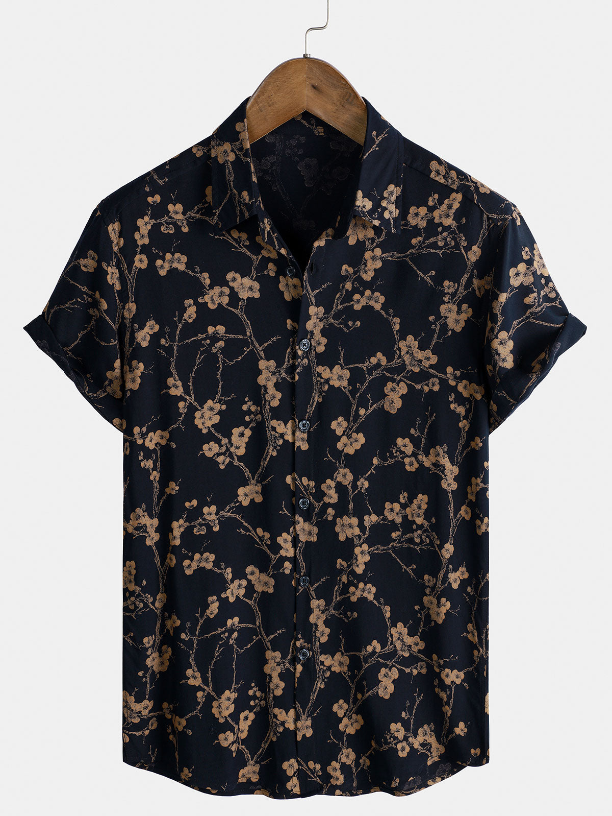 Men's Botanical Print 100%Rayon Short Sleeve Hawaiian Shirt