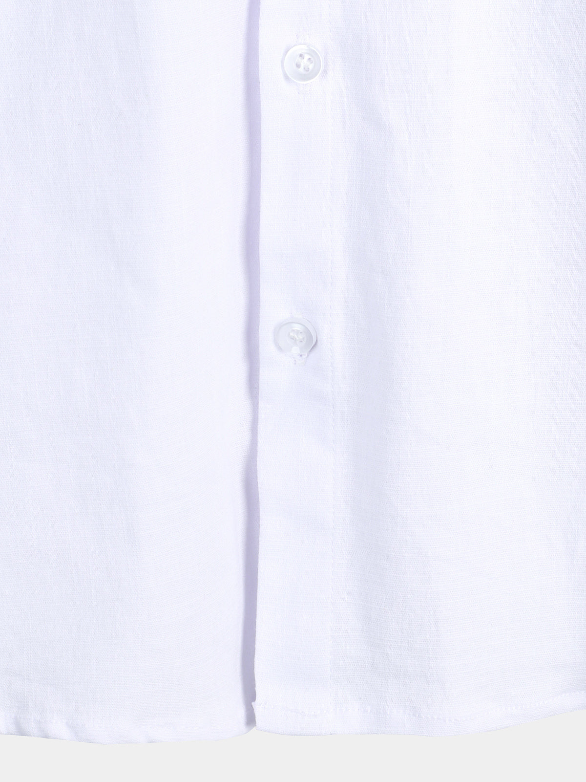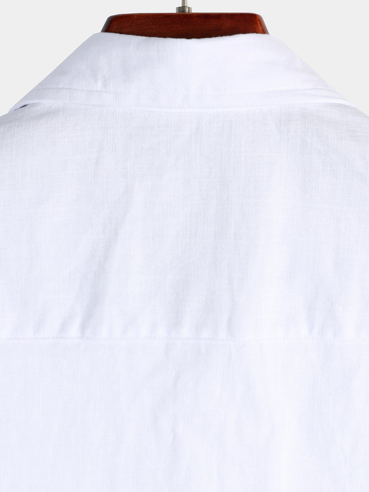 Men's Solid Color Linen Cotton Pocket Casual Button Short Sleeve Shirt