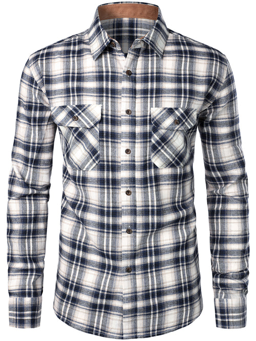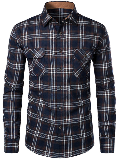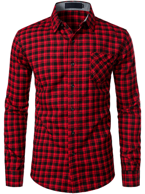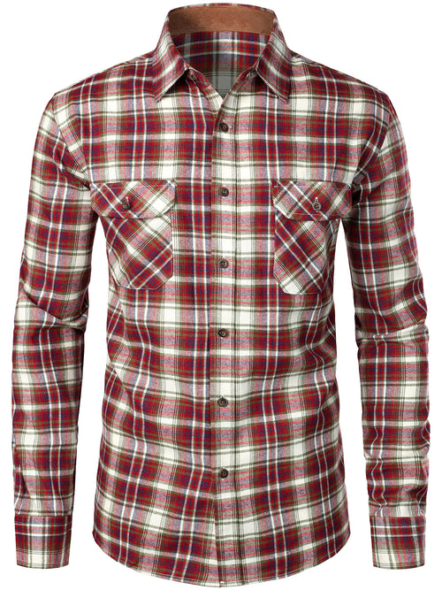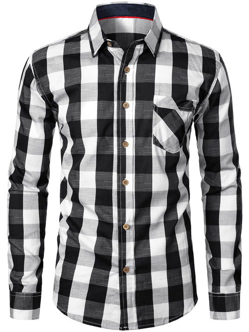 Men's Button Up Regular Fit Long Sleeve Plaid Flannel Casual Shirts
