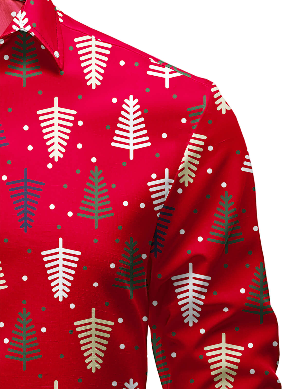 Men's Red Christmas Long Sleeve Christmas Tree Shirt
