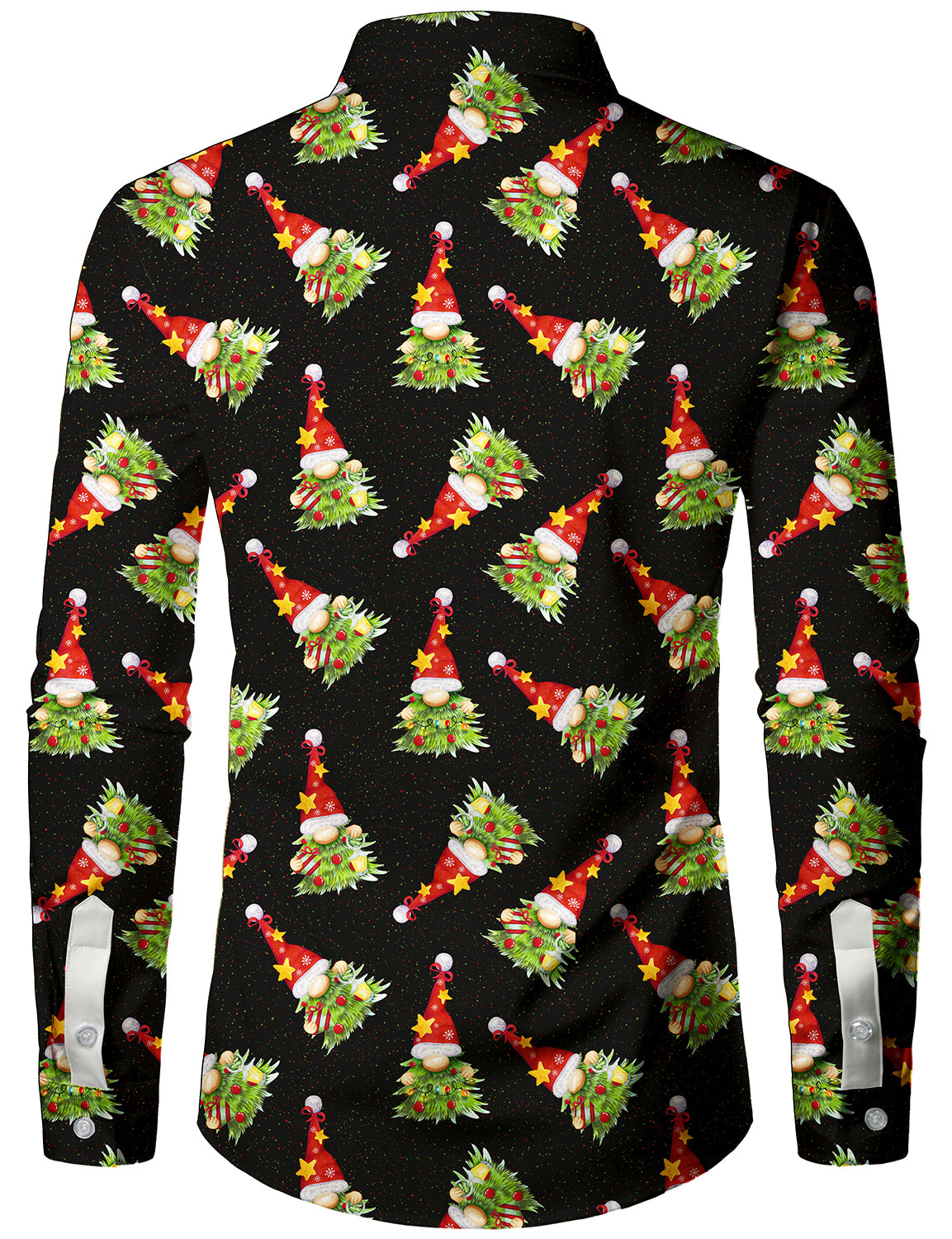 Men's Cute Gnome Christmas Button Up Xmas Day Holiday Long Sleeve Shirt