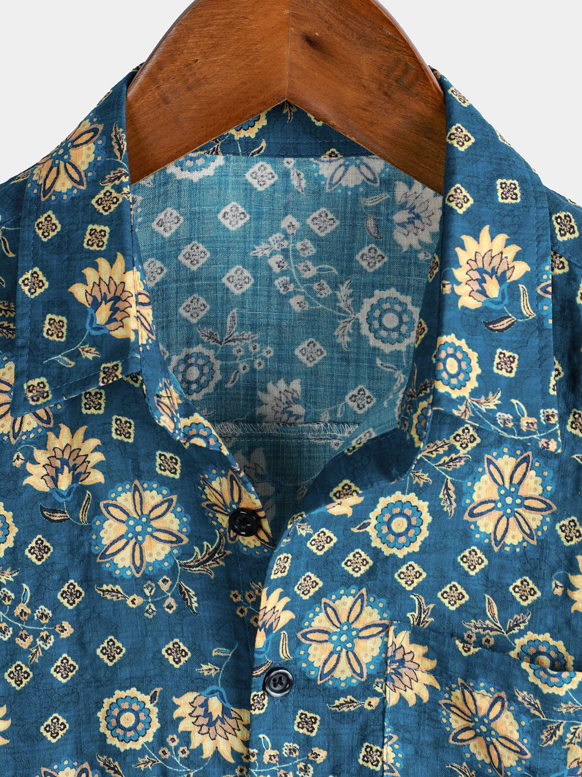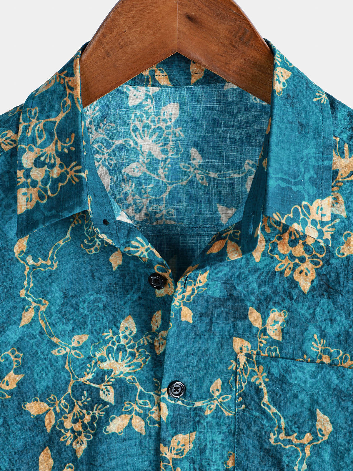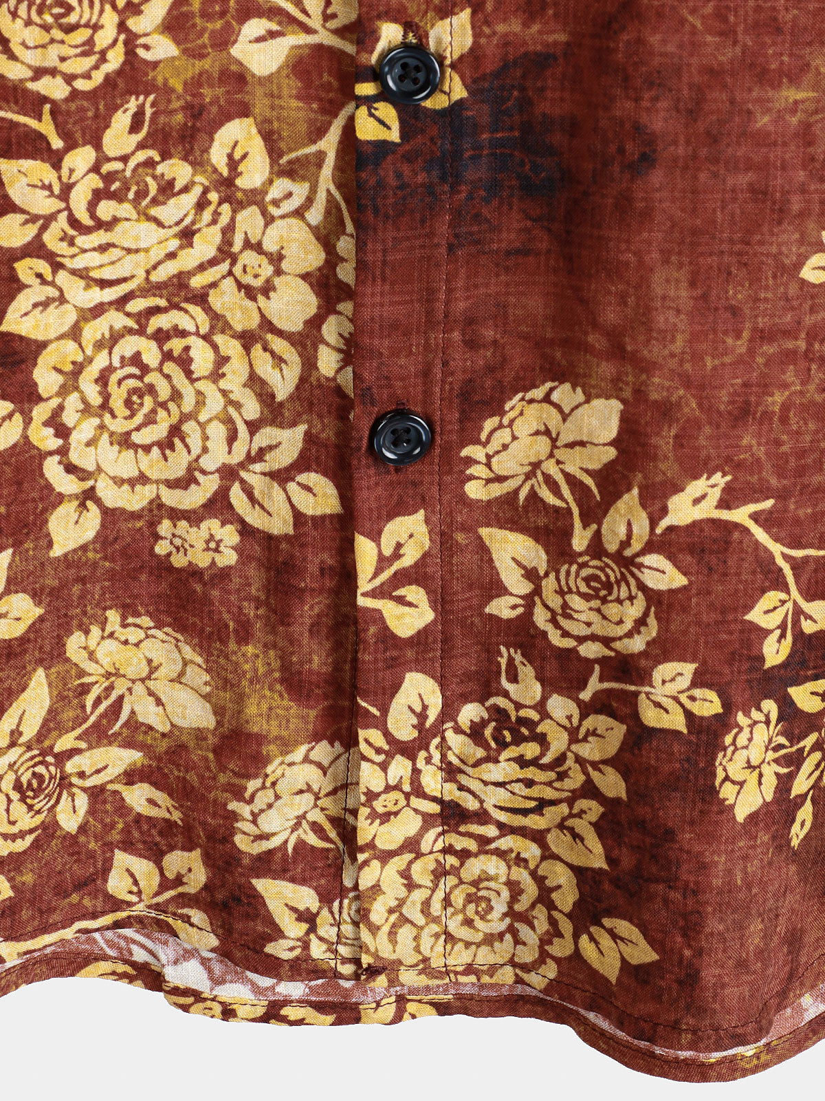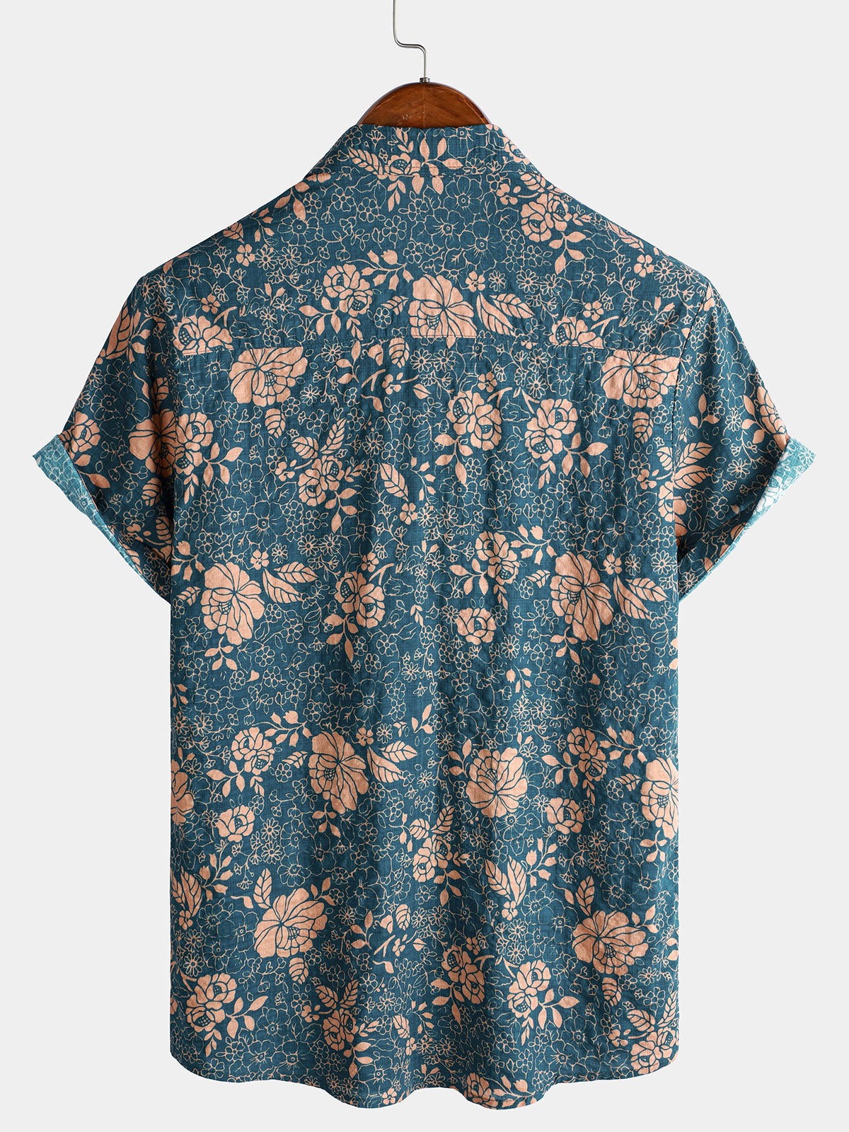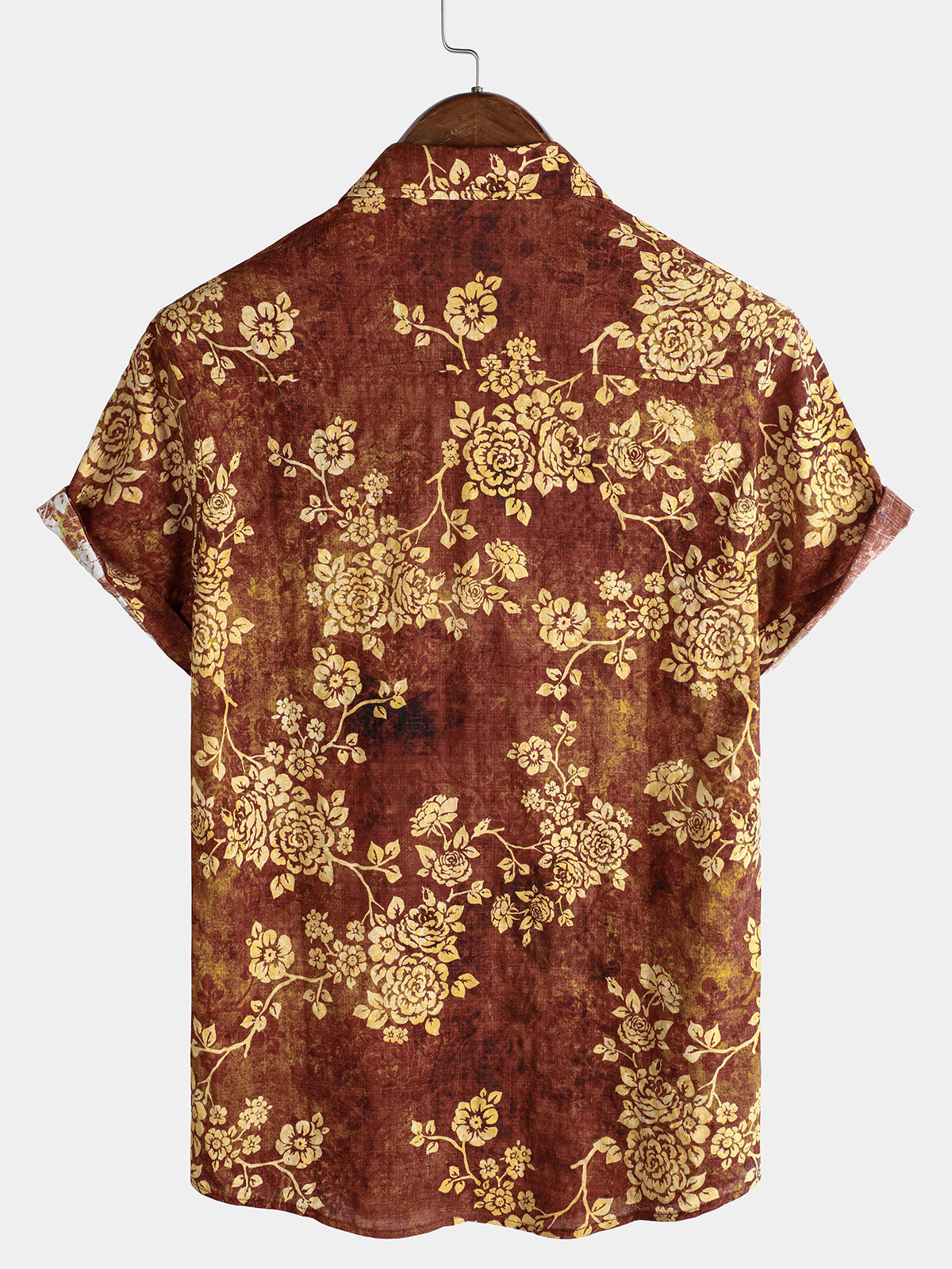 Men's Vintage Floral Cotton Breathable Short Sleeve Button Up Shirt