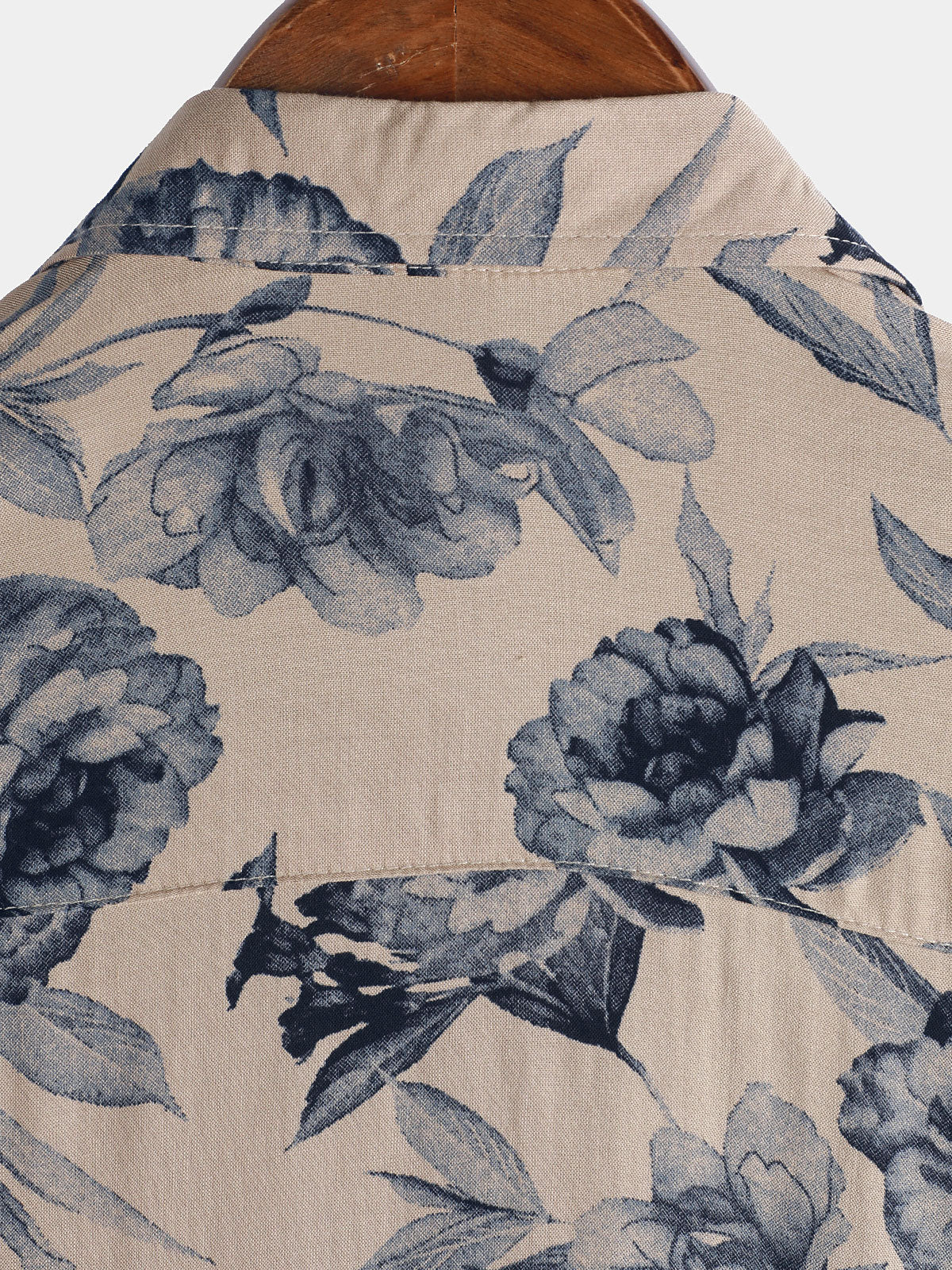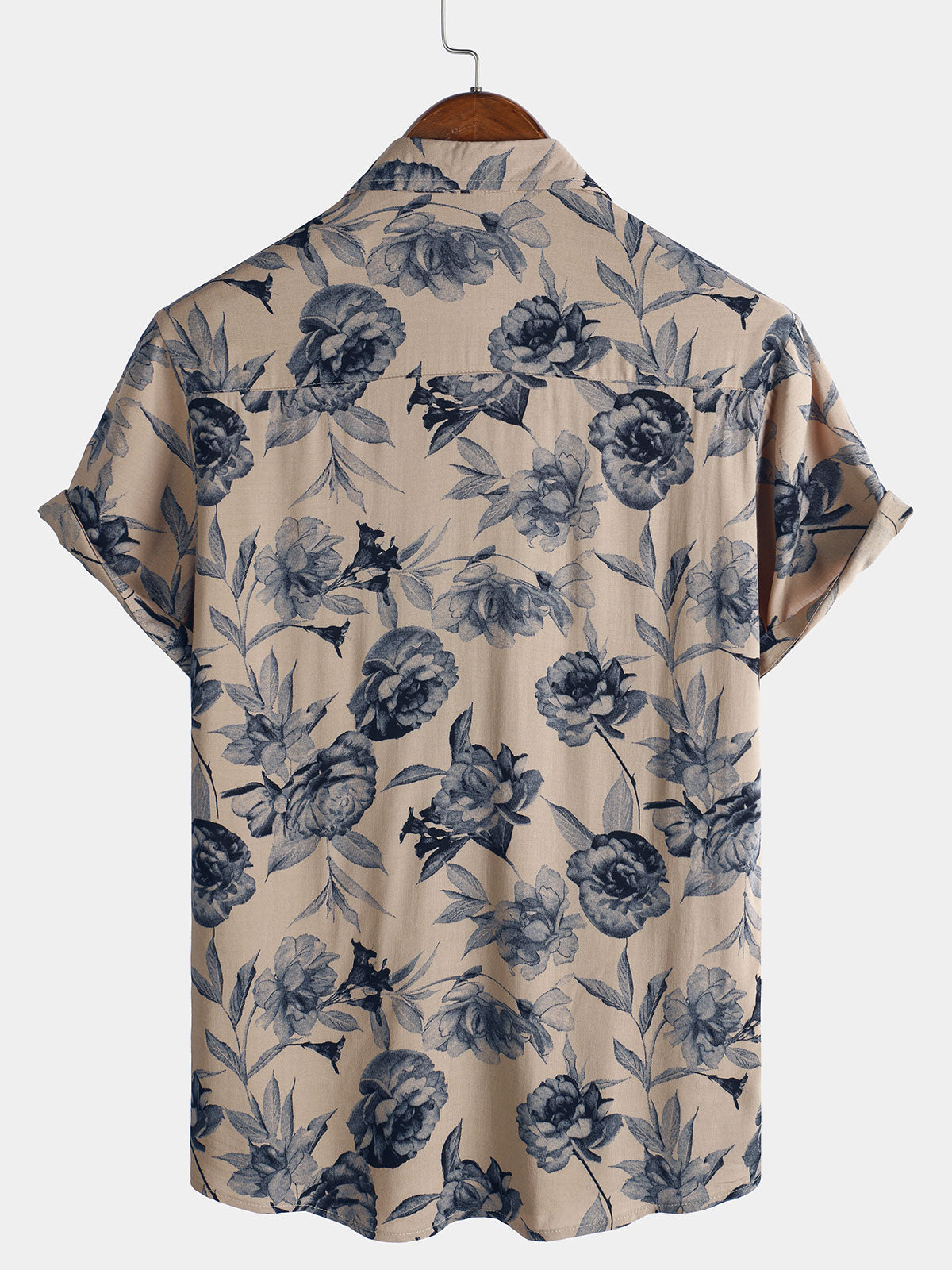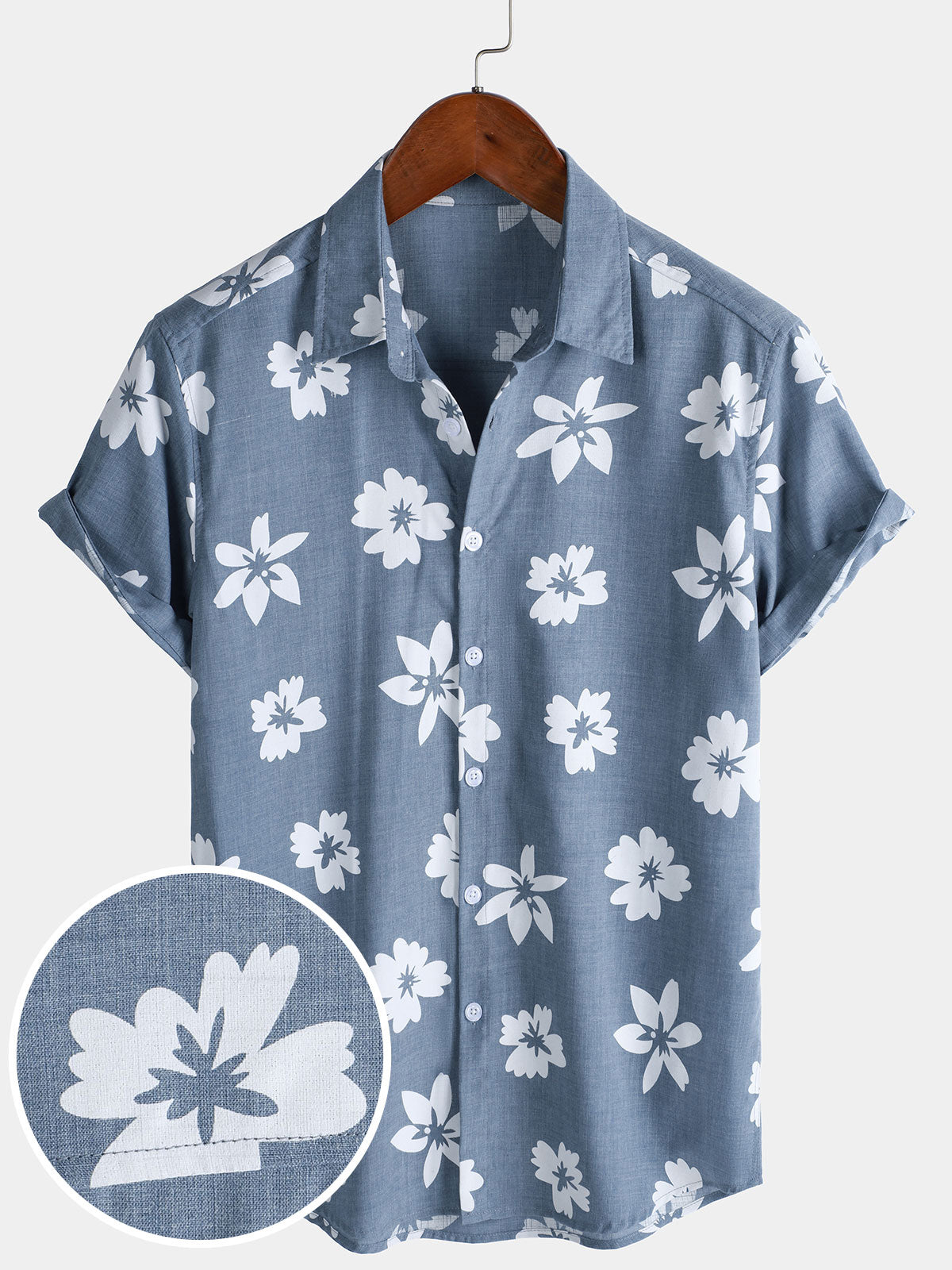 Men's Floral Casual Cotton Short Sleeve Beach Shirt