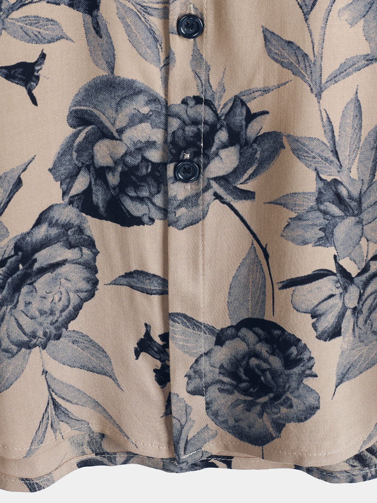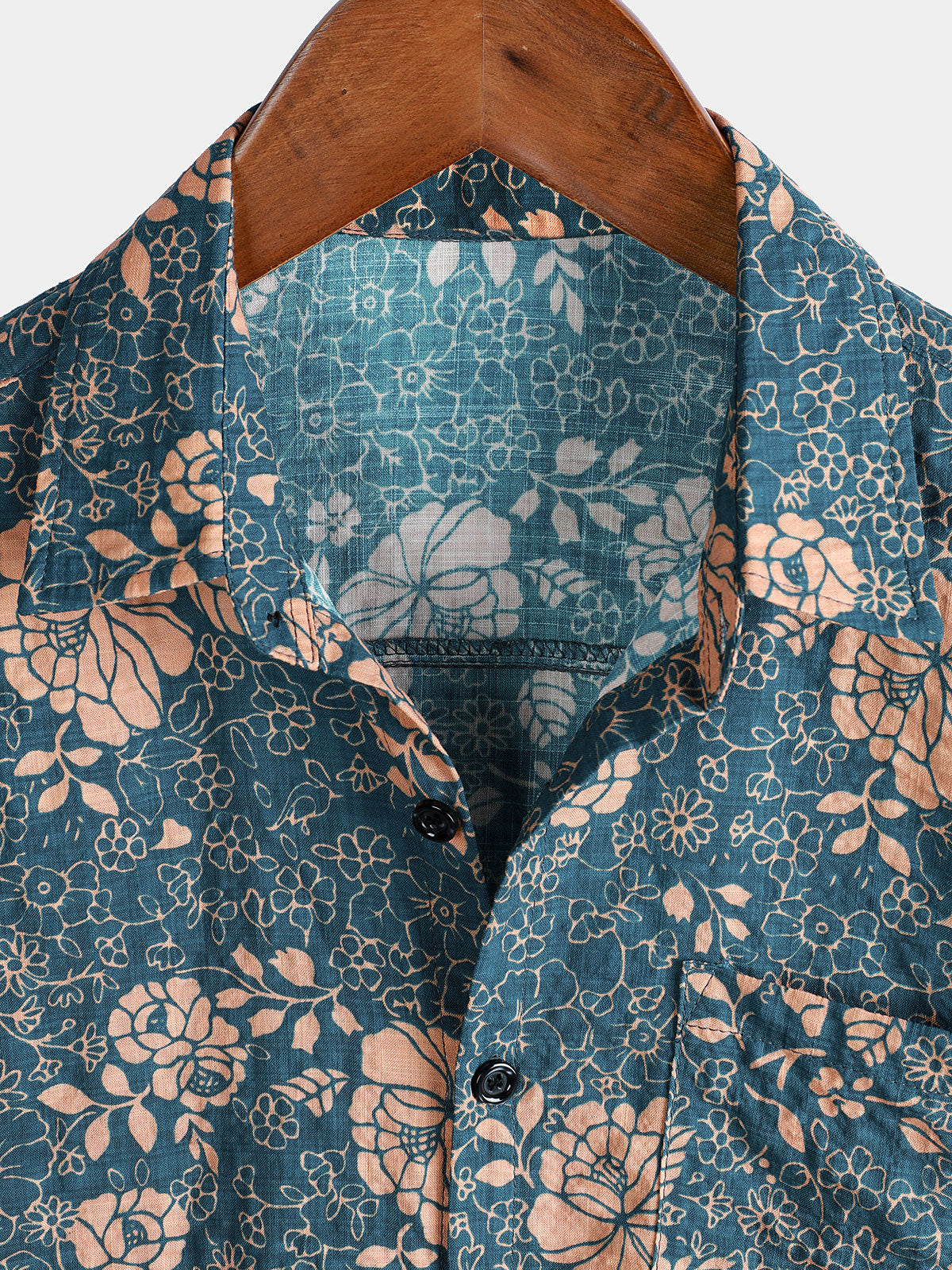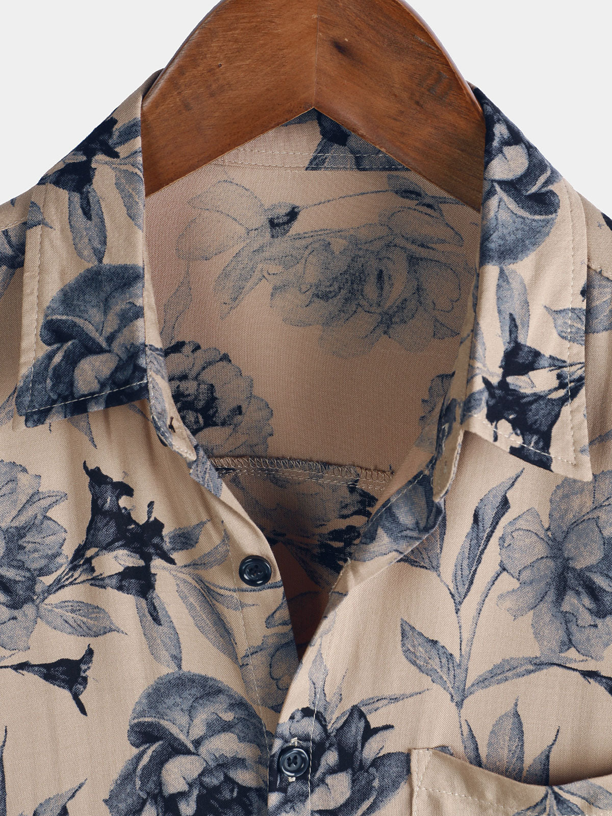 Men's Floral Casual Cotton Short Sleeve Beach Shirt