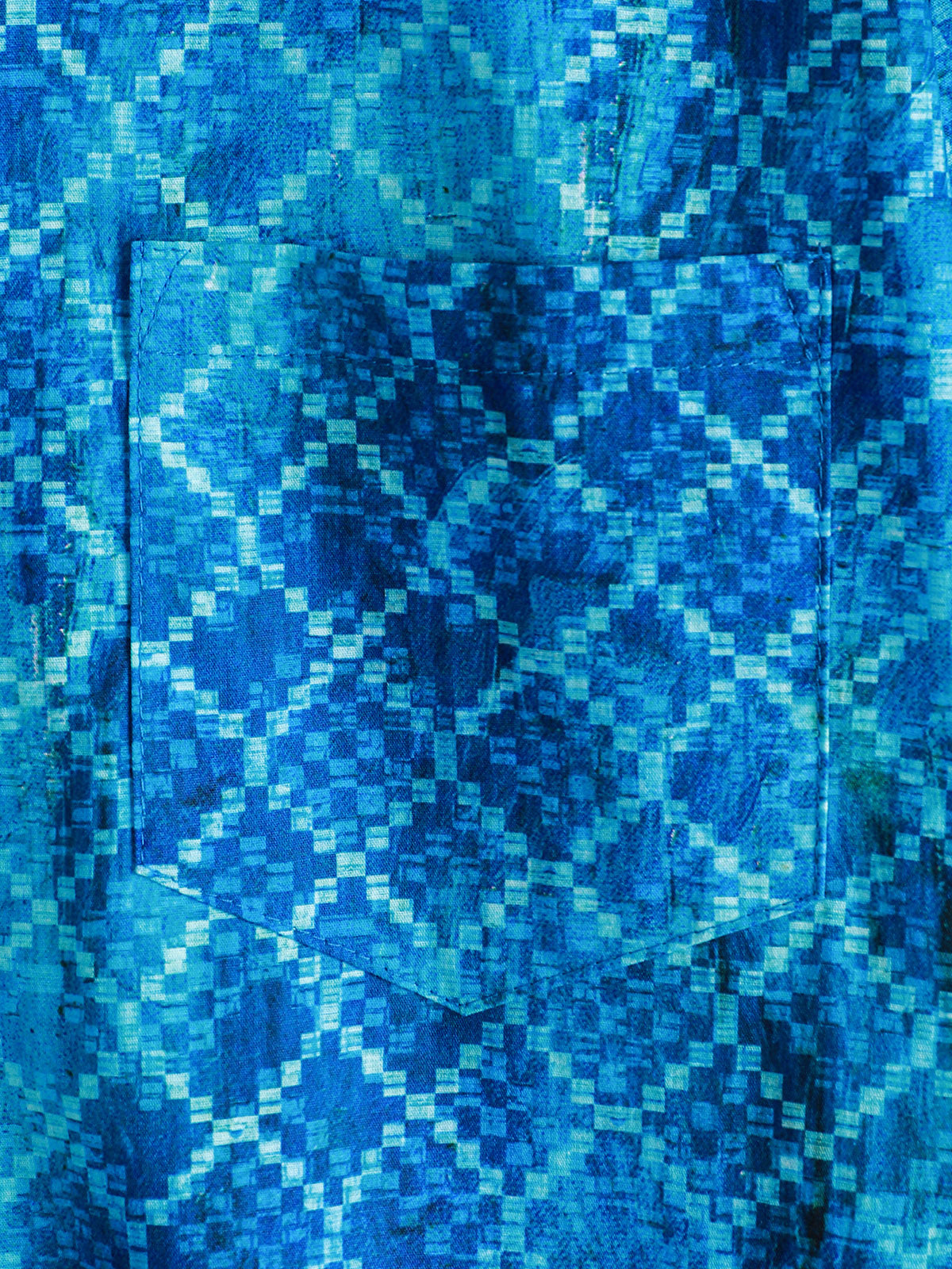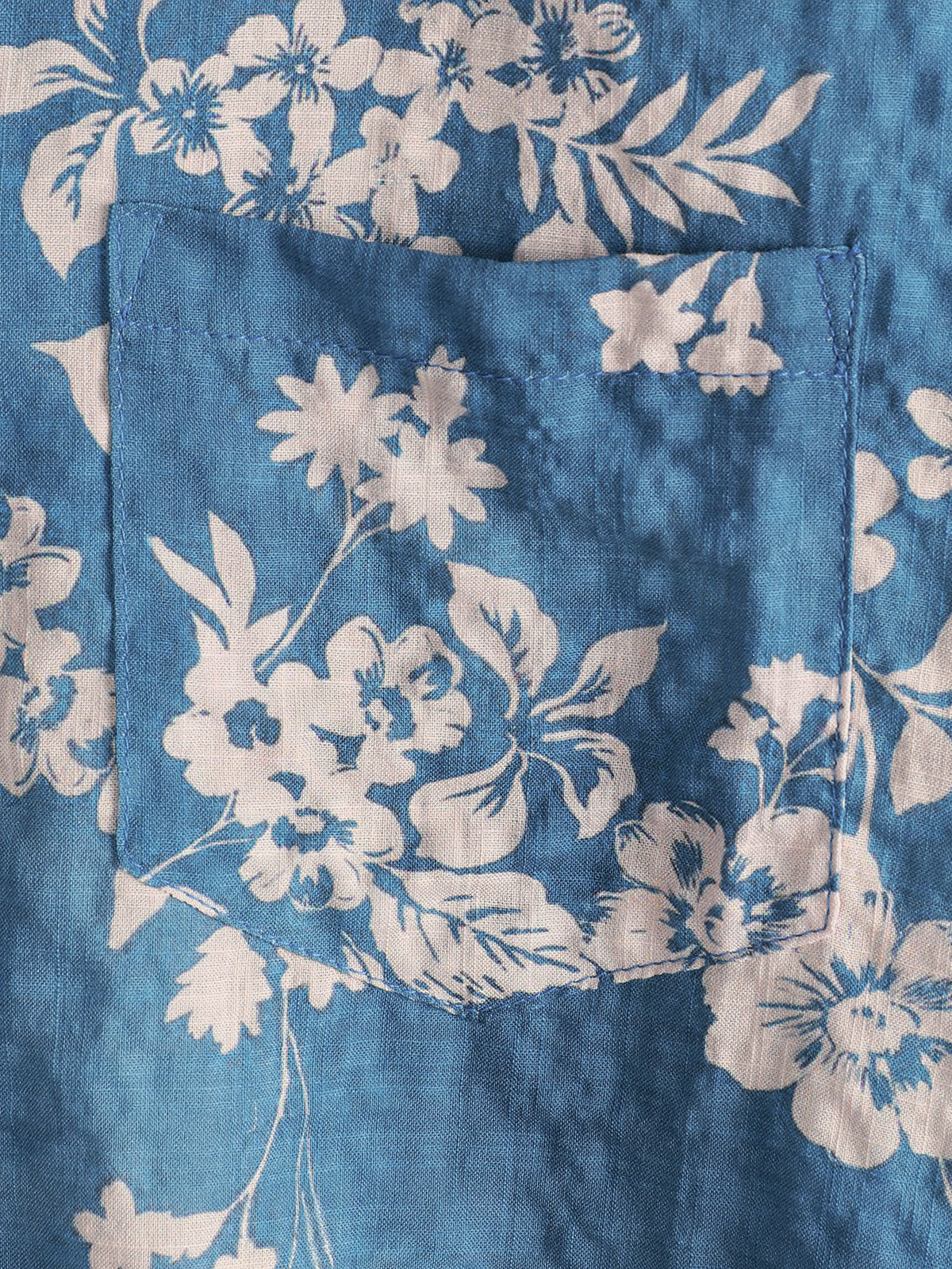Men's Blue Floral Print Summer Breathable Pocket Short Sleeve Shirt