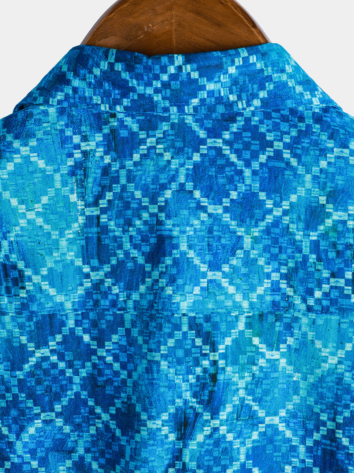 Men's Blue Hawaiian Summer Short Sleeve Shirt