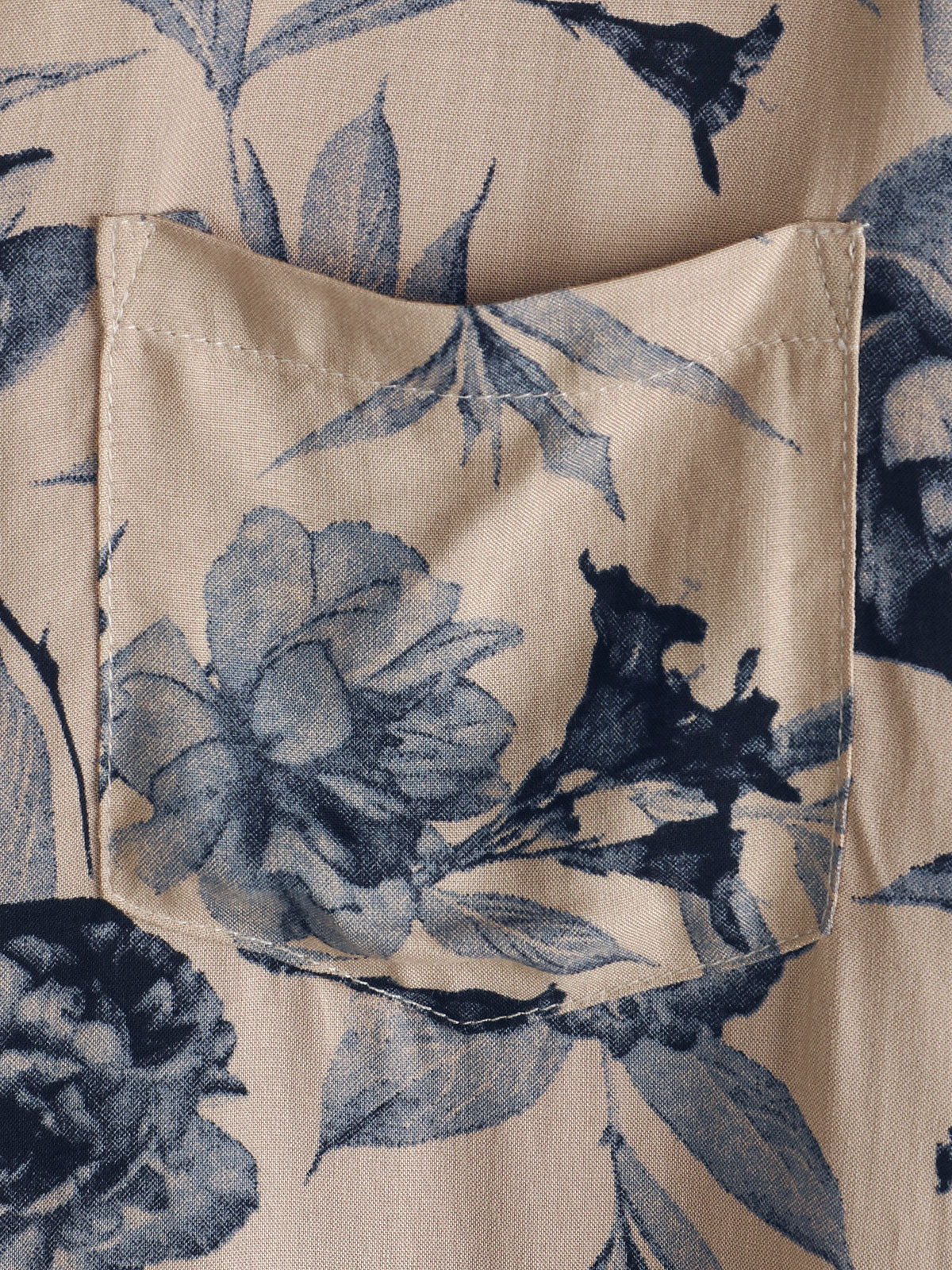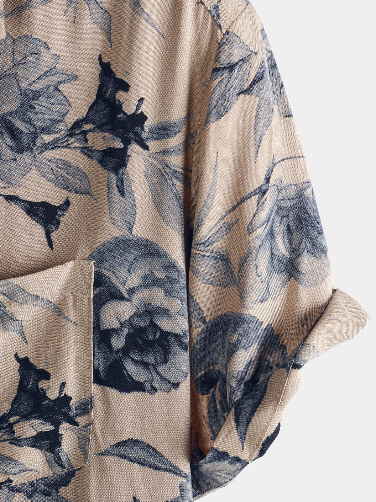 Men's Floral Print Vintage Flower Holiday Pocket Short Sleeve Shirt