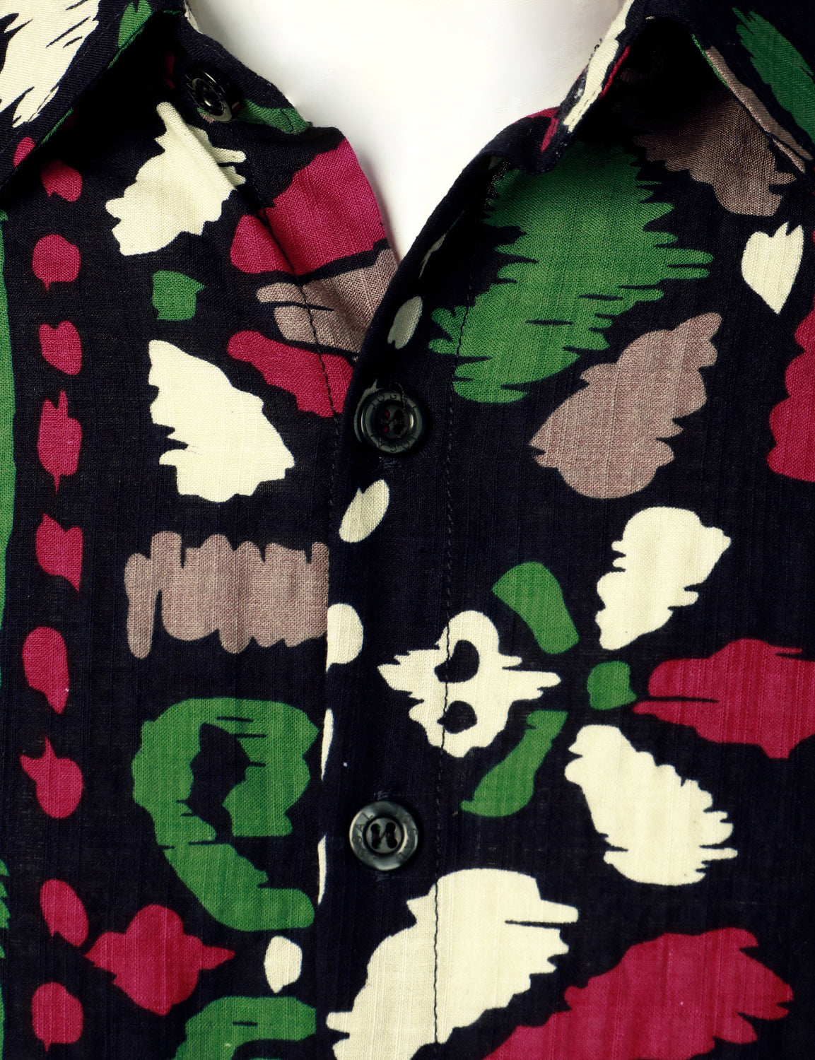 Men's Botanical Print 100%Rayon Short Sleeve Hawaiian Shirt