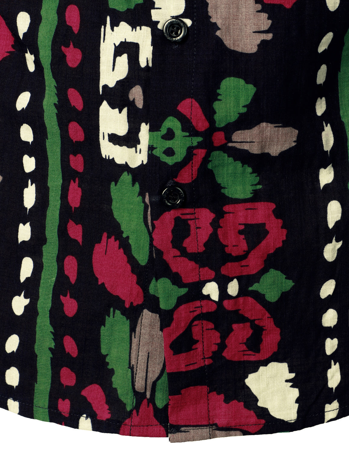 Men's Retro Tribal Floral Print Summer Short Sleeve Bohemian Black Shirt