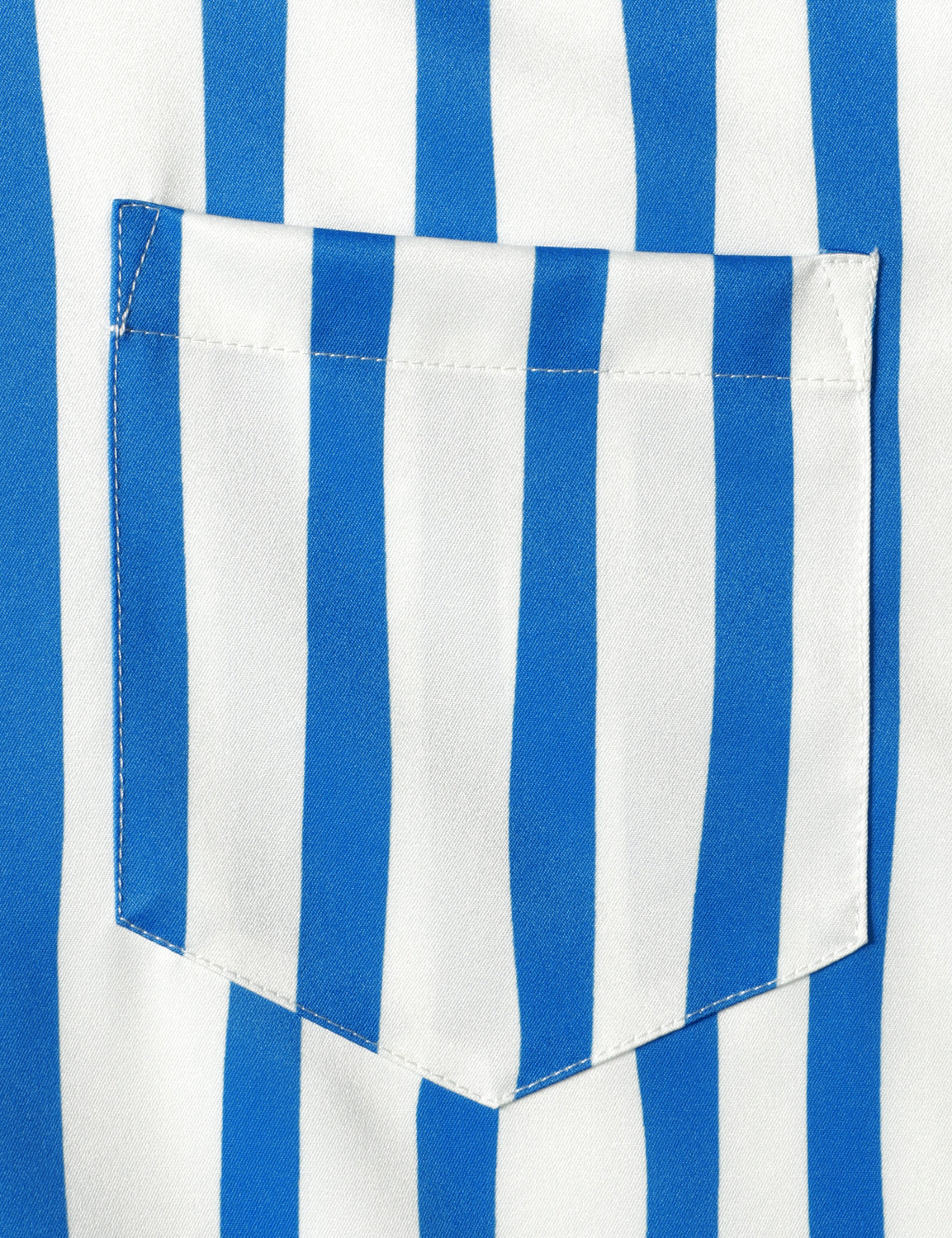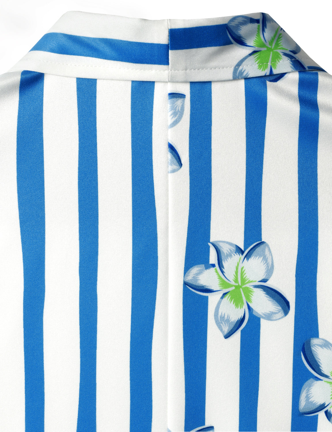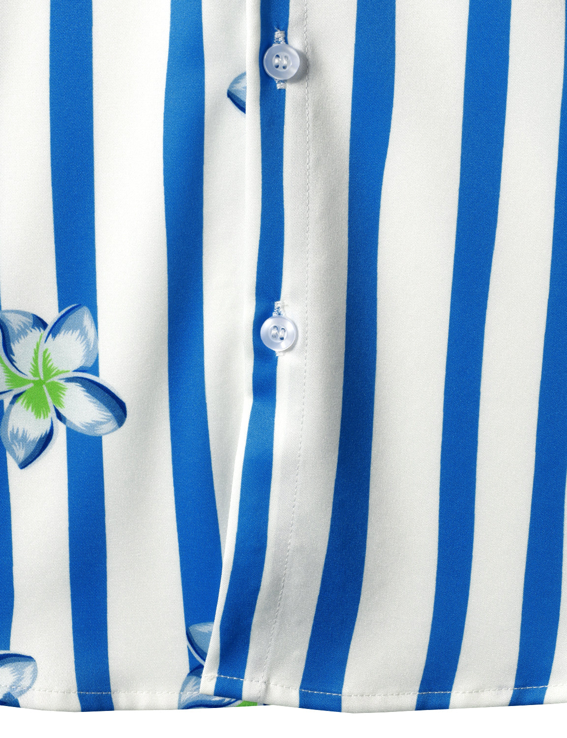 Men's Floral Blue and White Striped Print Summer Casual Flowers Aloha Short Sleeve Hawaiian Shirt