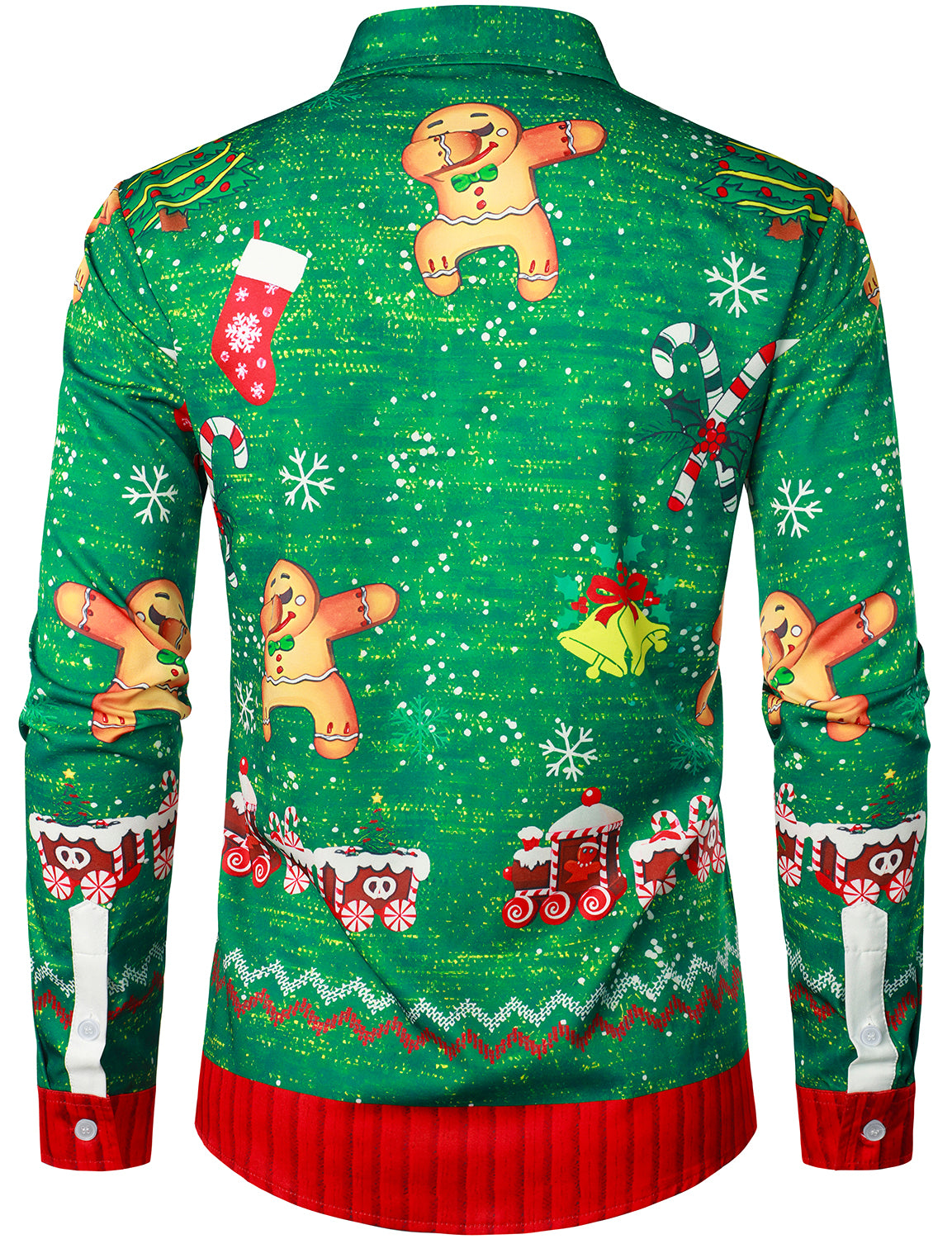 Men's Christmas Crackers Bell Print Funny Outfit Themed Top Long Sleeve Shirt