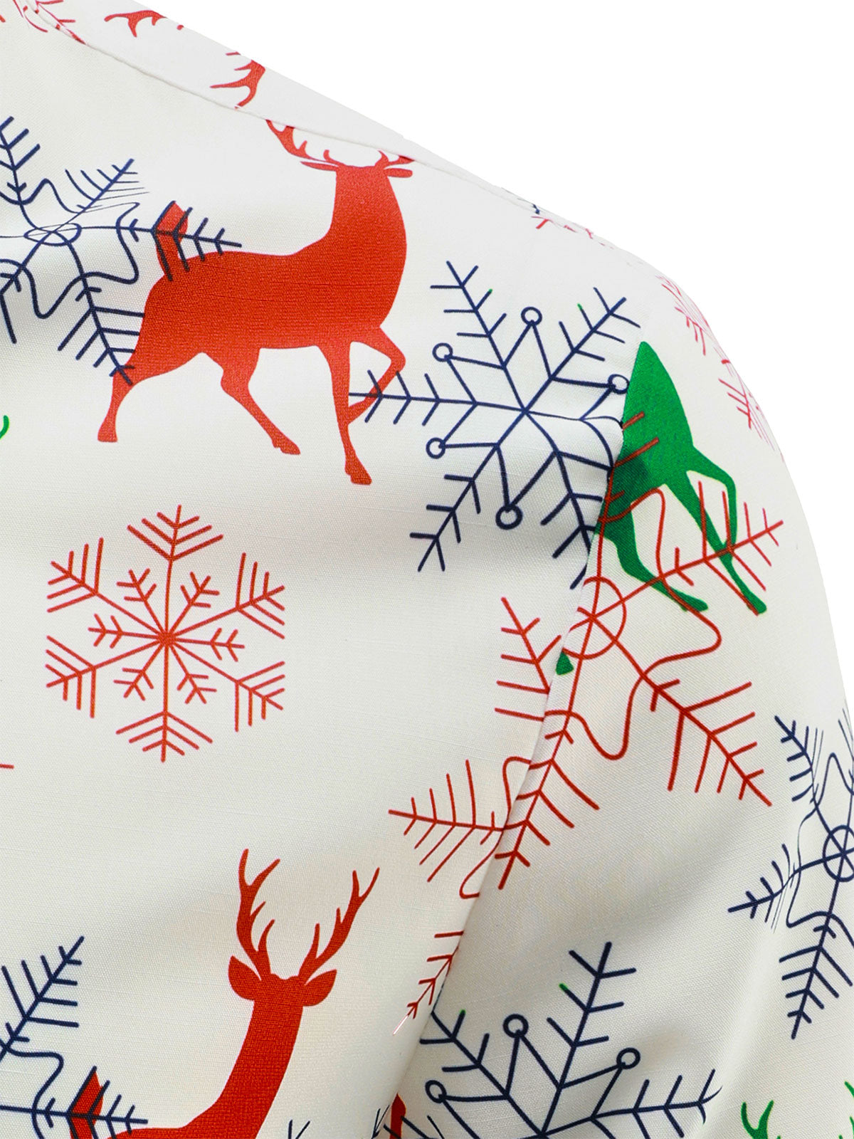 Men's Christmas Elk Holiday Button Down Long Sleeve Shirt