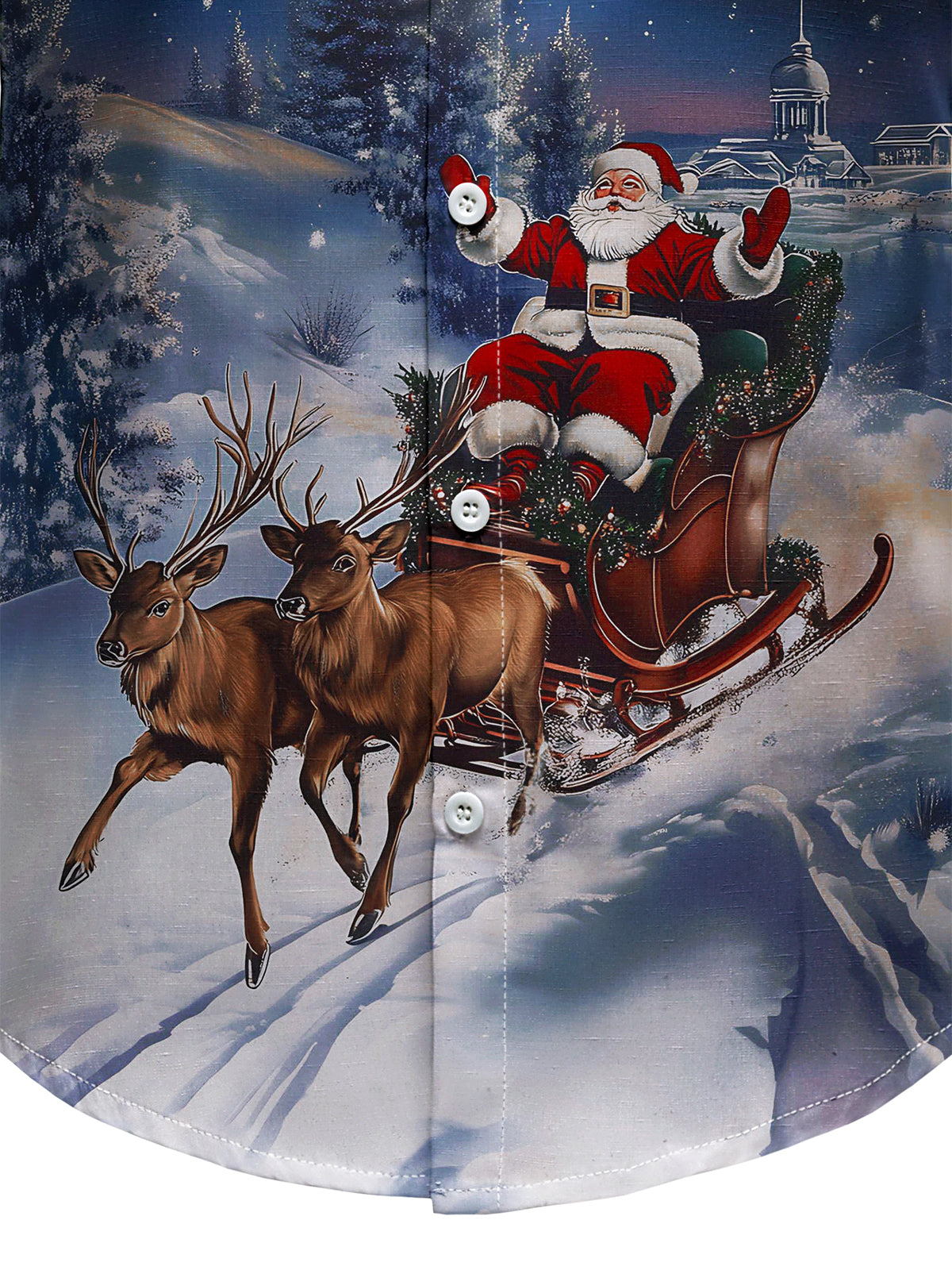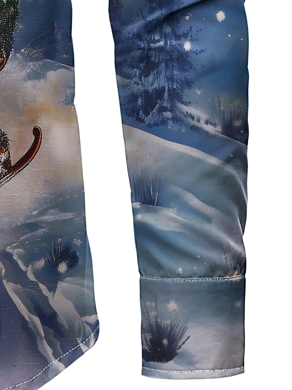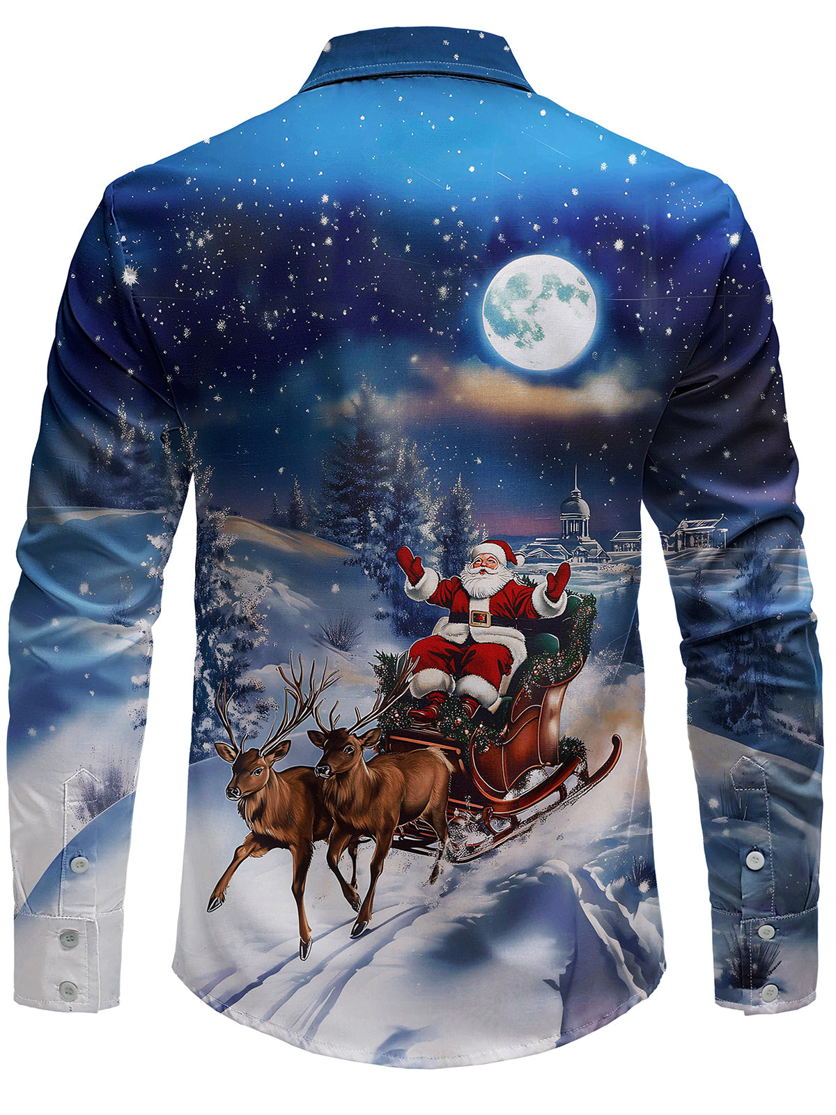 Men's Christmas Long Sleeve Elk Sleigh Santa Shirt