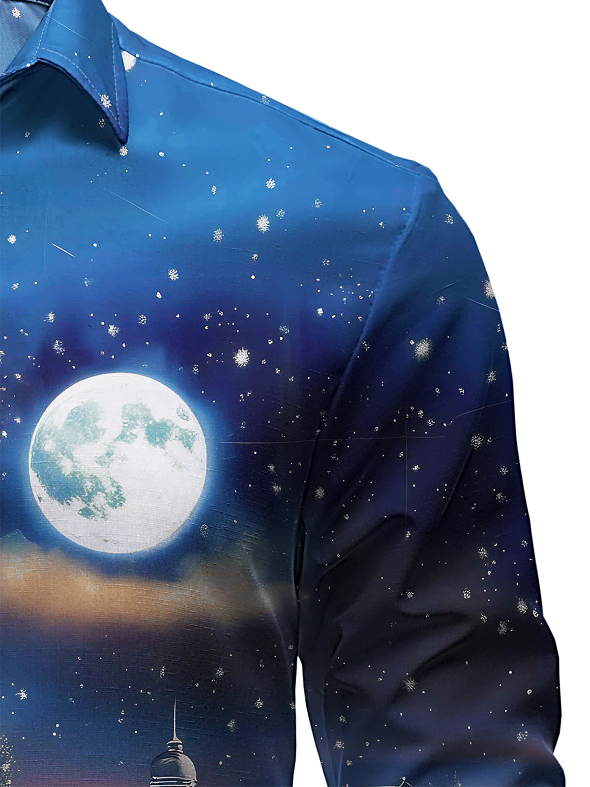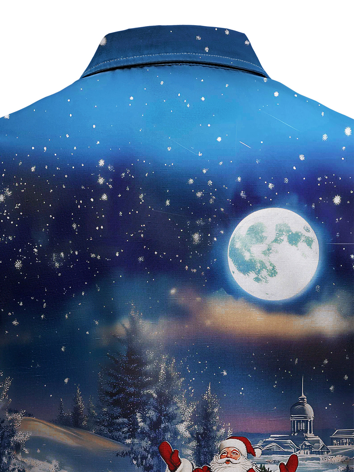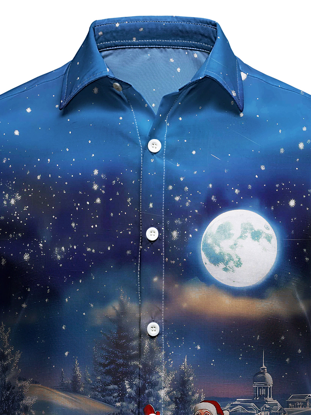 Men's Christmas Long Sleeve Elk Sleigh Santa Shirt