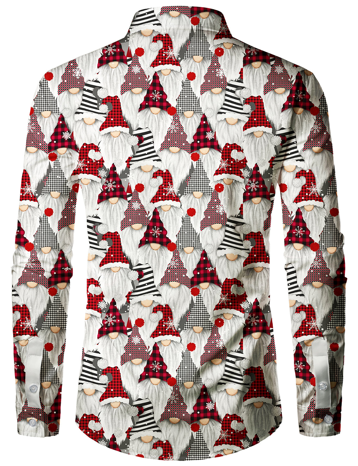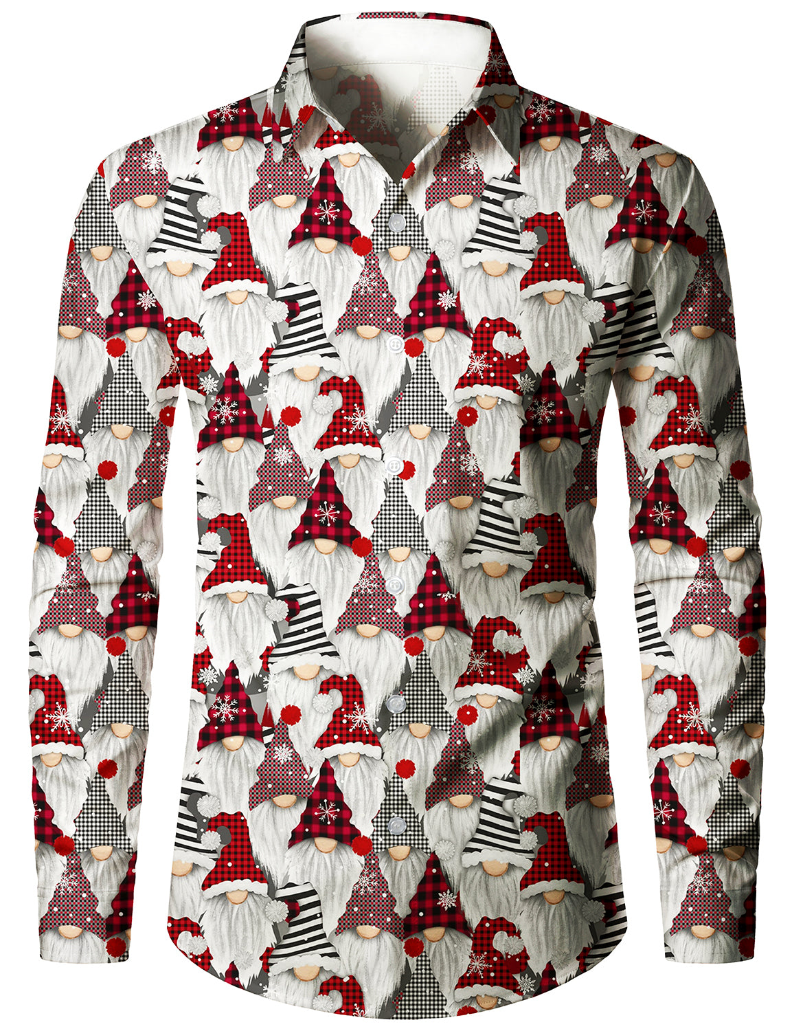 Men's Cute Gnome Christmas Button Up Xmas Day Holiday Long Sleeve Shirt