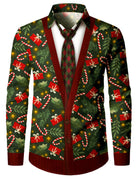 Men's Funny Holiday Vintage Christmas Print Long Sleeve Shirt
