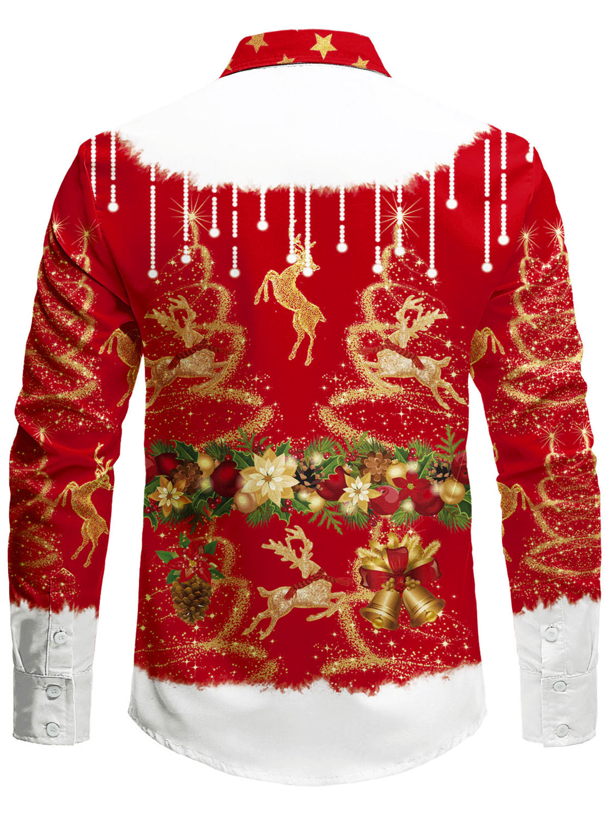 Men's Santa Claus Shiny Stars Christmas Party Funny Holiday Long Sleeve Shirt