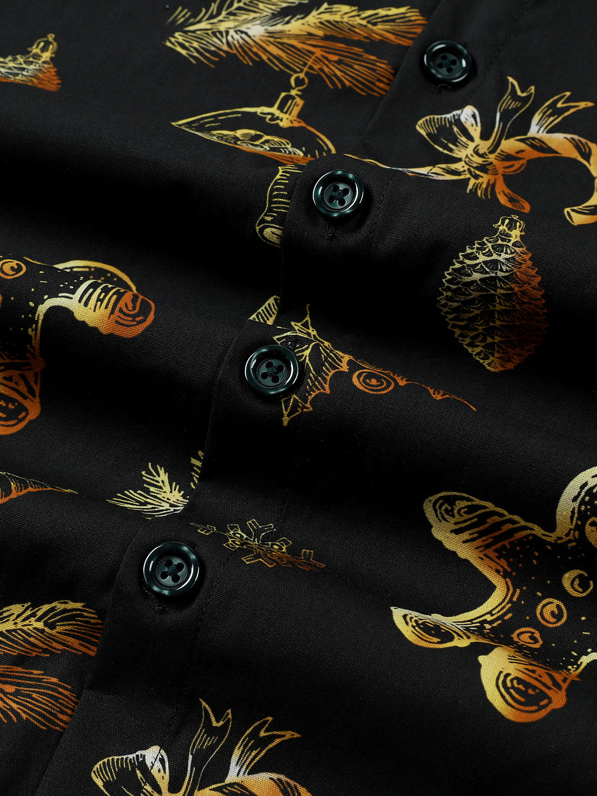 Men's Gold Christmas Tree And Reindeer Print Long Sleeve Button Up Shirt