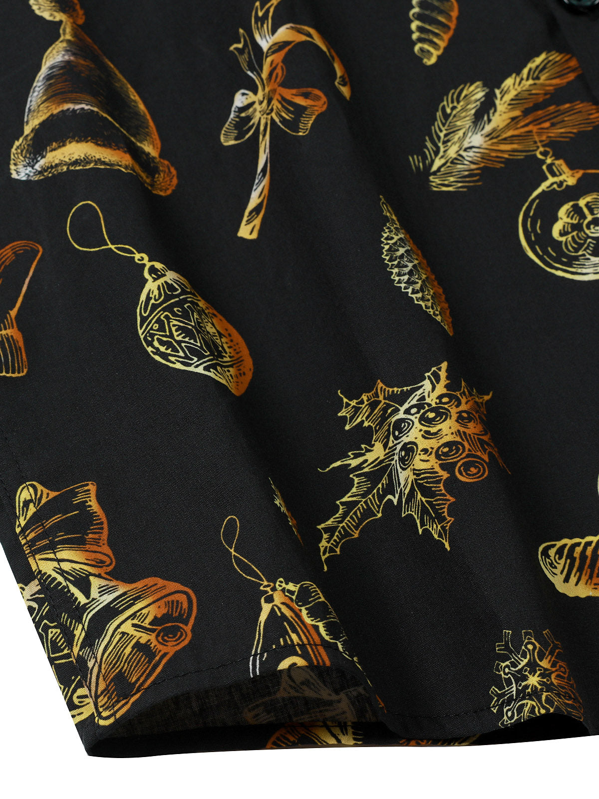 Men's Funny Santa Claus Gold Christmas Print Holiday Long Sleeve Shirt