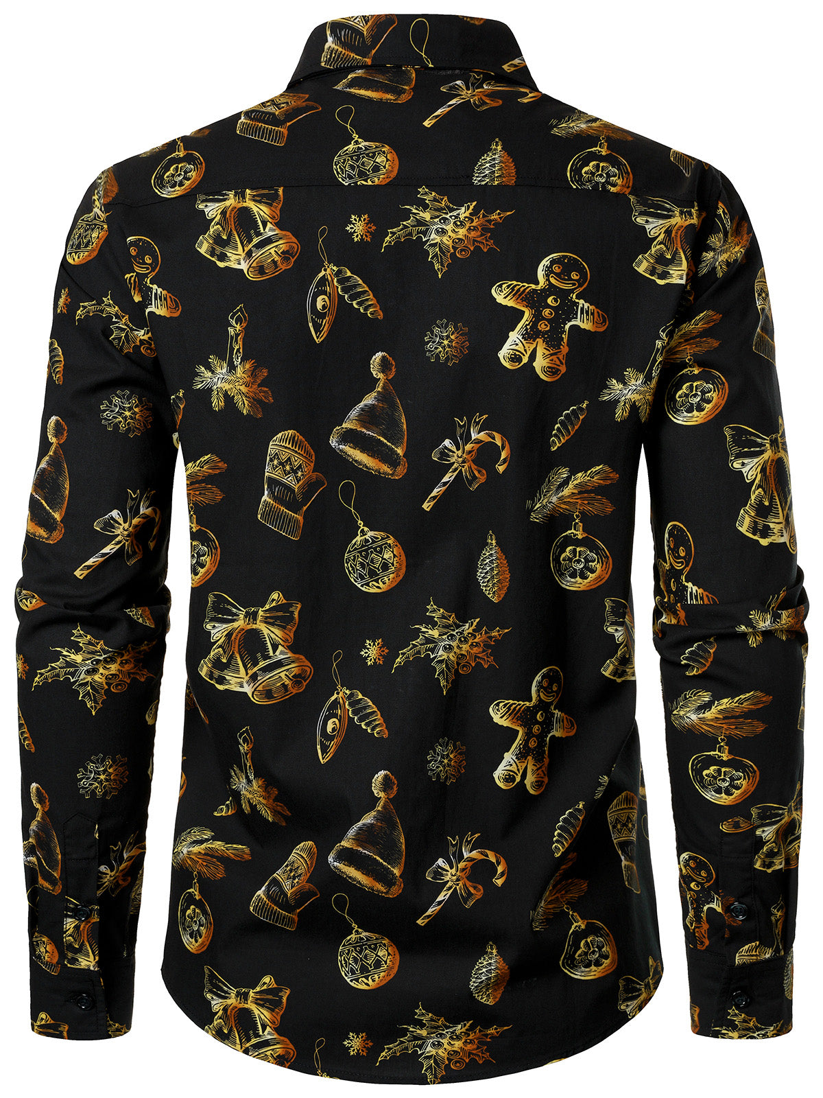 Men's Cotton Christmas Shiny Gingerbread Man Long Sleeve Shirt