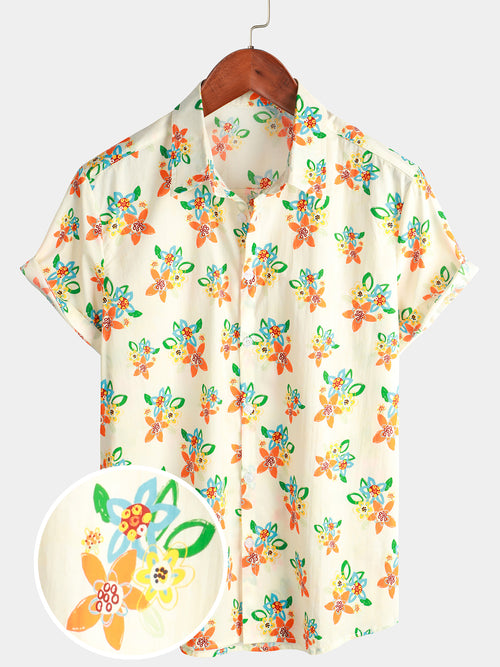 Men's Tropical Vintage Floral Short Sleeve Holiday Shirt