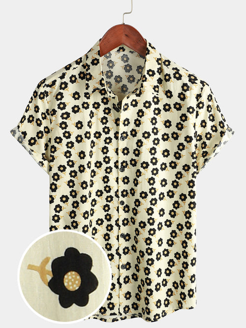 Men's Floral Print Vintage Flower Breathable Holiday Short Sleeve Shirt