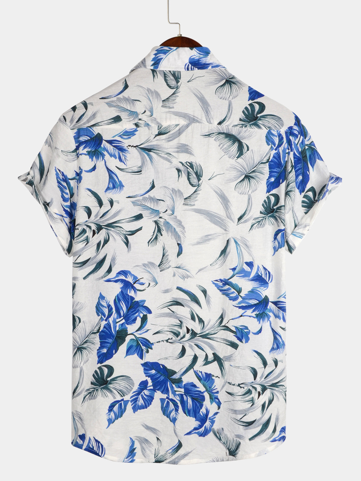 Men's Tropical Blue Leaf Vacation Short Sleeve Summer Button Up Hawaiian Shirt