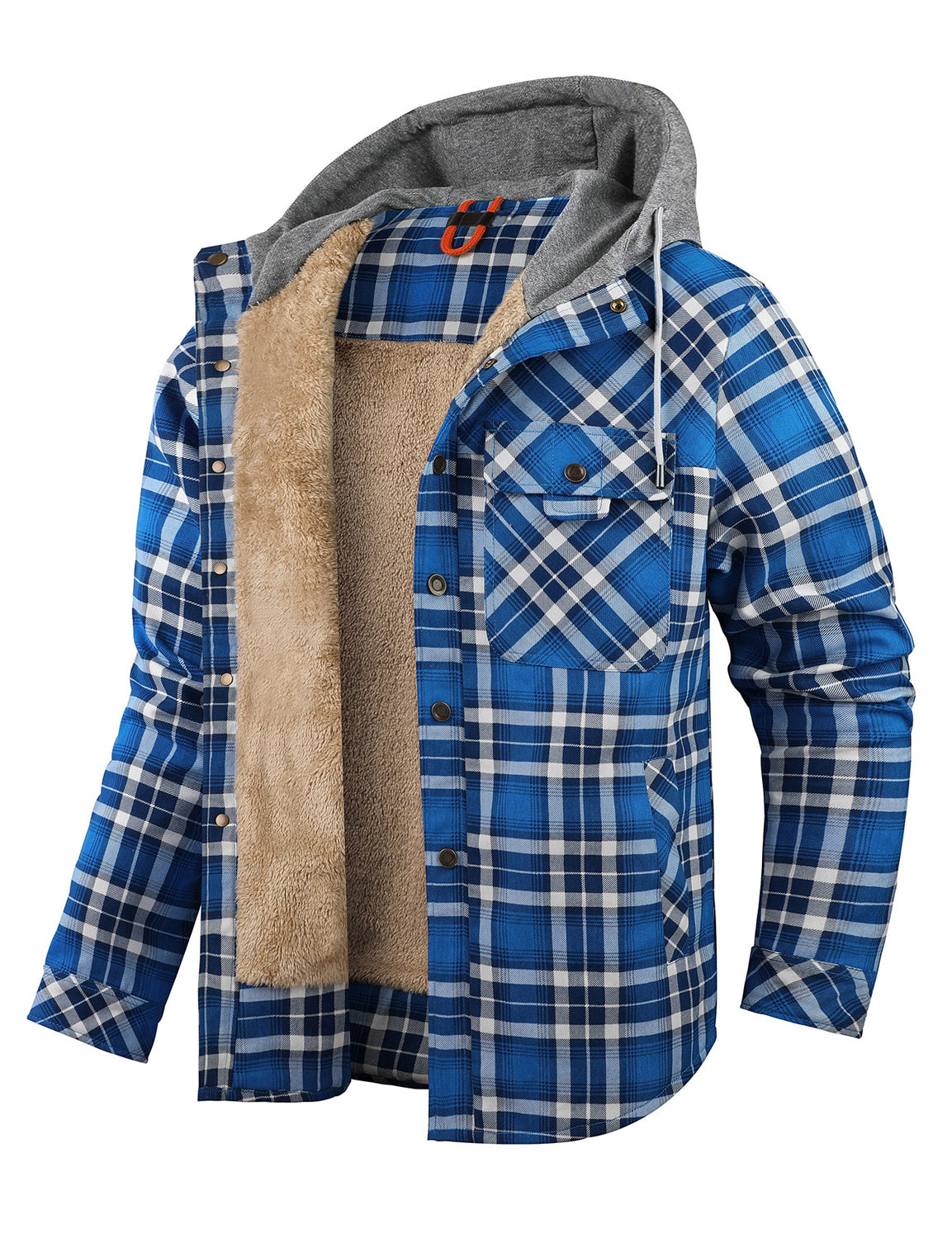 Men's Casual Flannel Lined Long Sleeve Fall Winter Warm Plaid Hooded Shirt Jacket