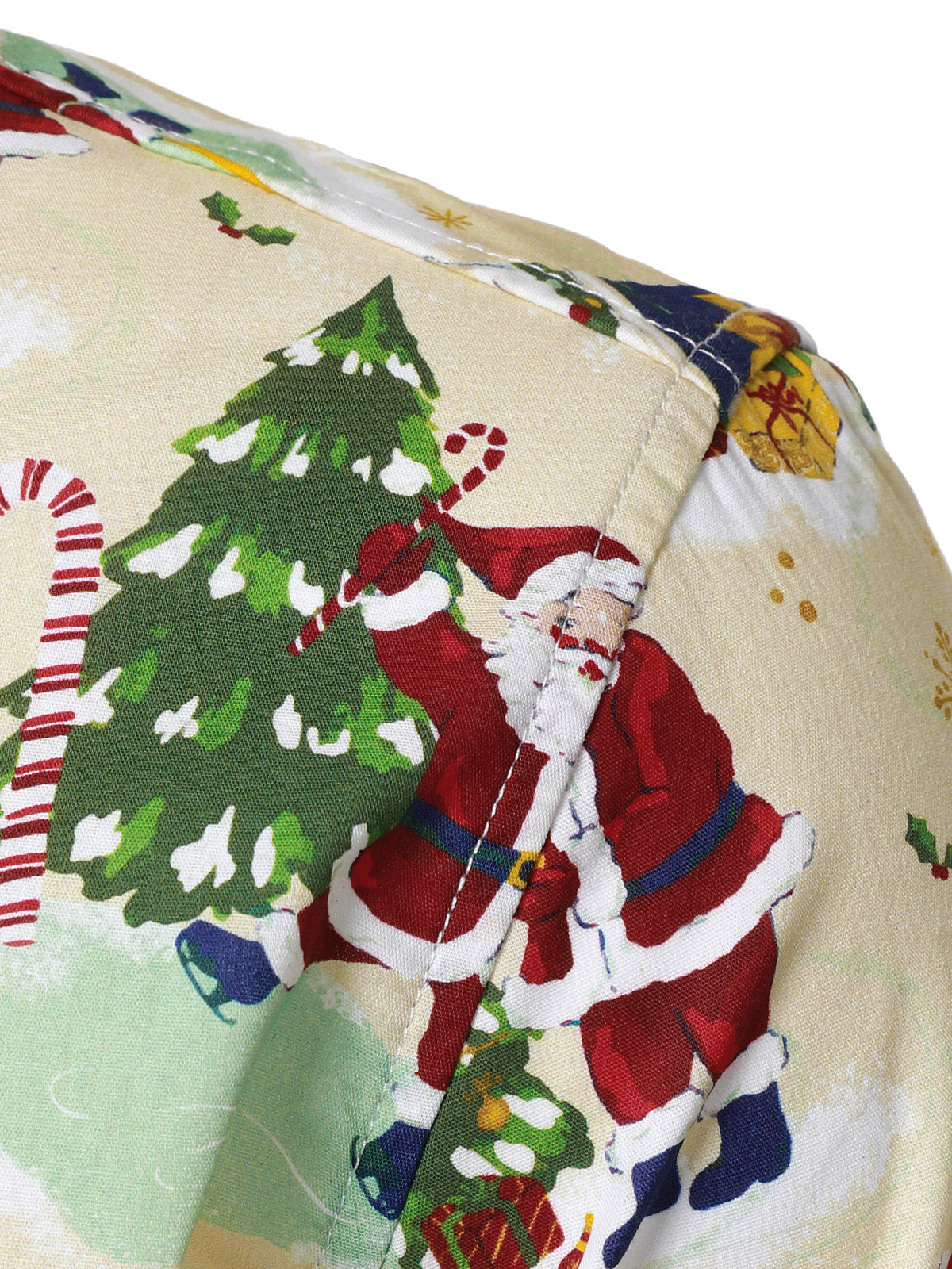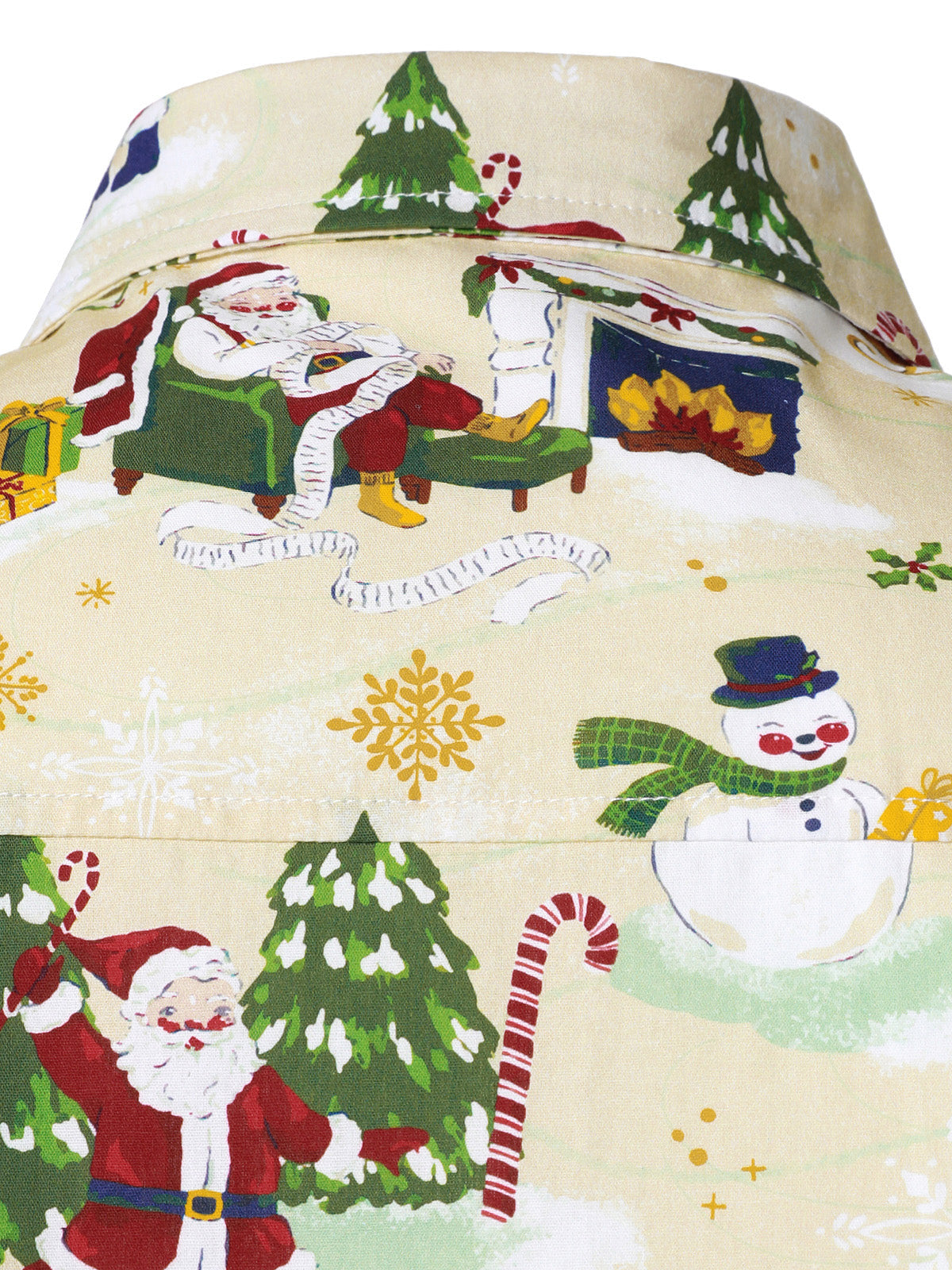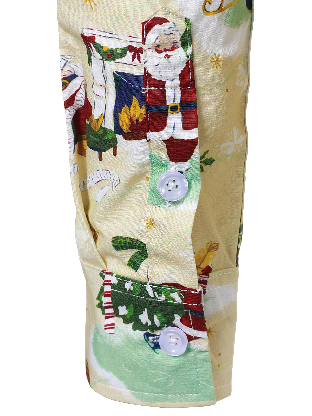 Men's Vintage Santa Claus Print Cotton Long Sleeve Shirt