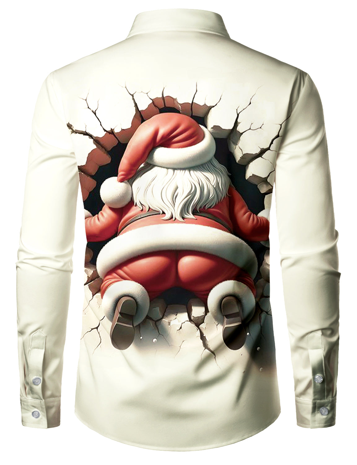 Men's Christmas Funny Santa Claus Holiday Long Sleeve Shirt