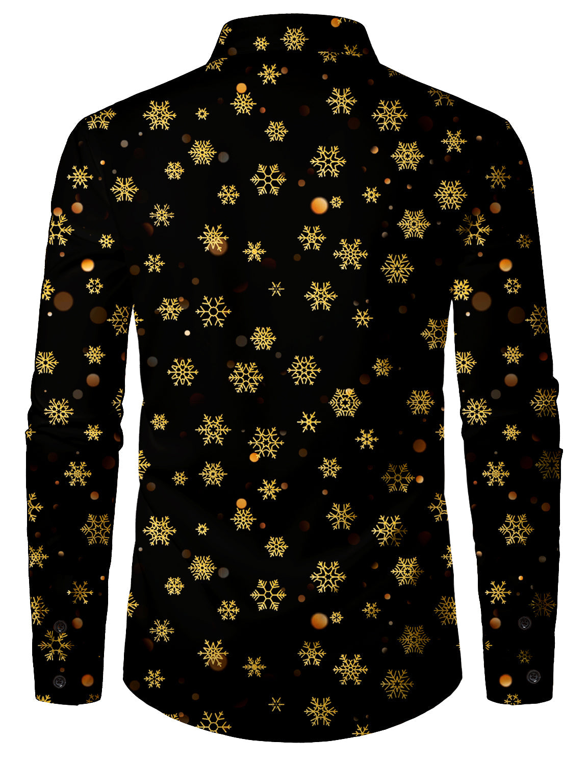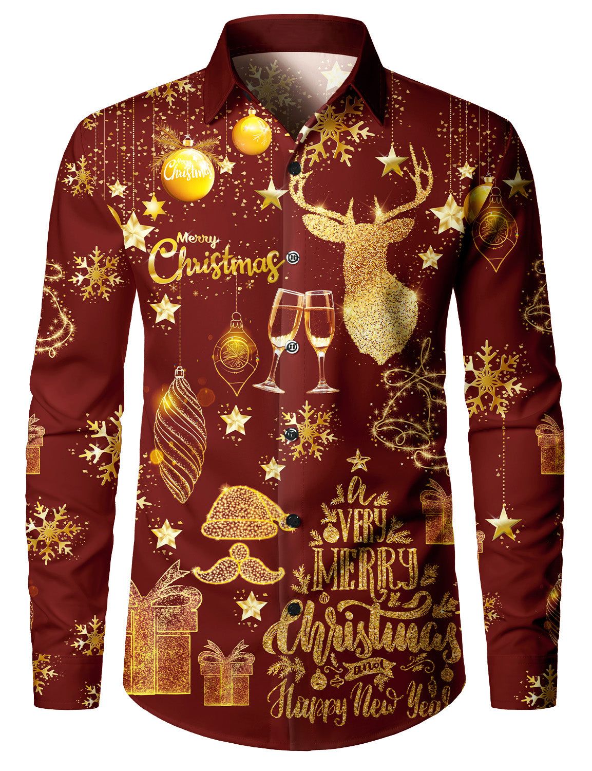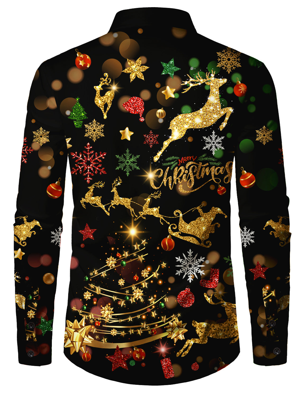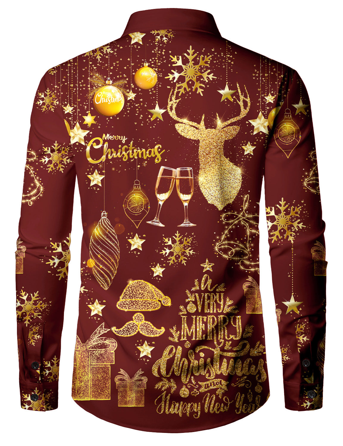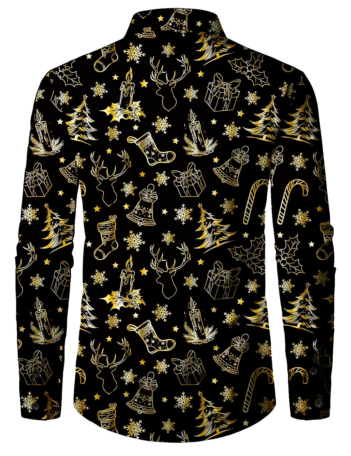 Men's Golden Christmas Print Holiday Long Sleeve Shirt