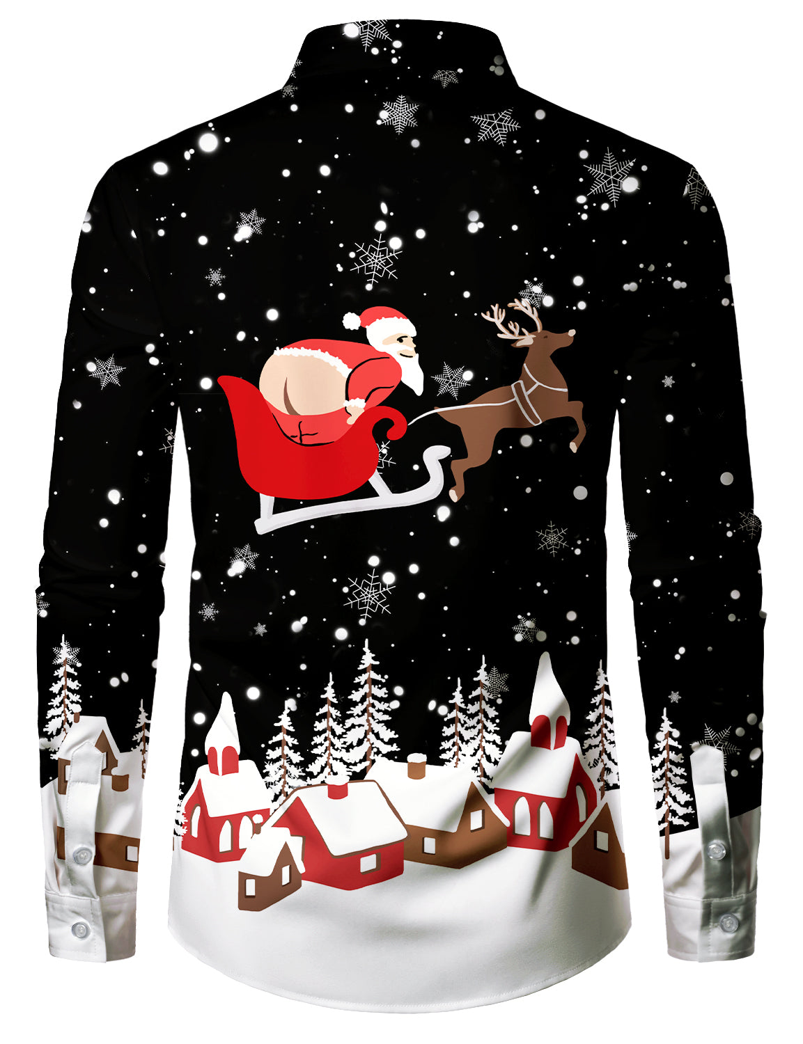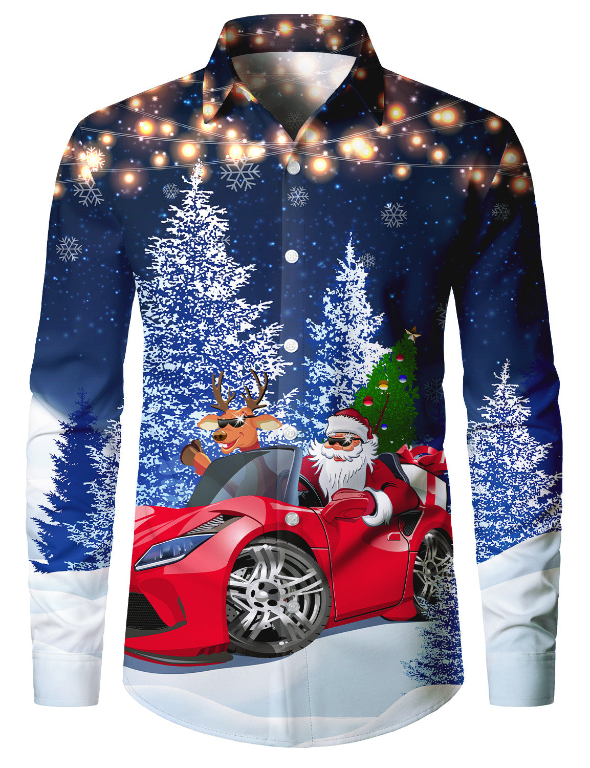 Men's Christmas Santa Print Xmas New Year Long Sleeve Holiday Shirt