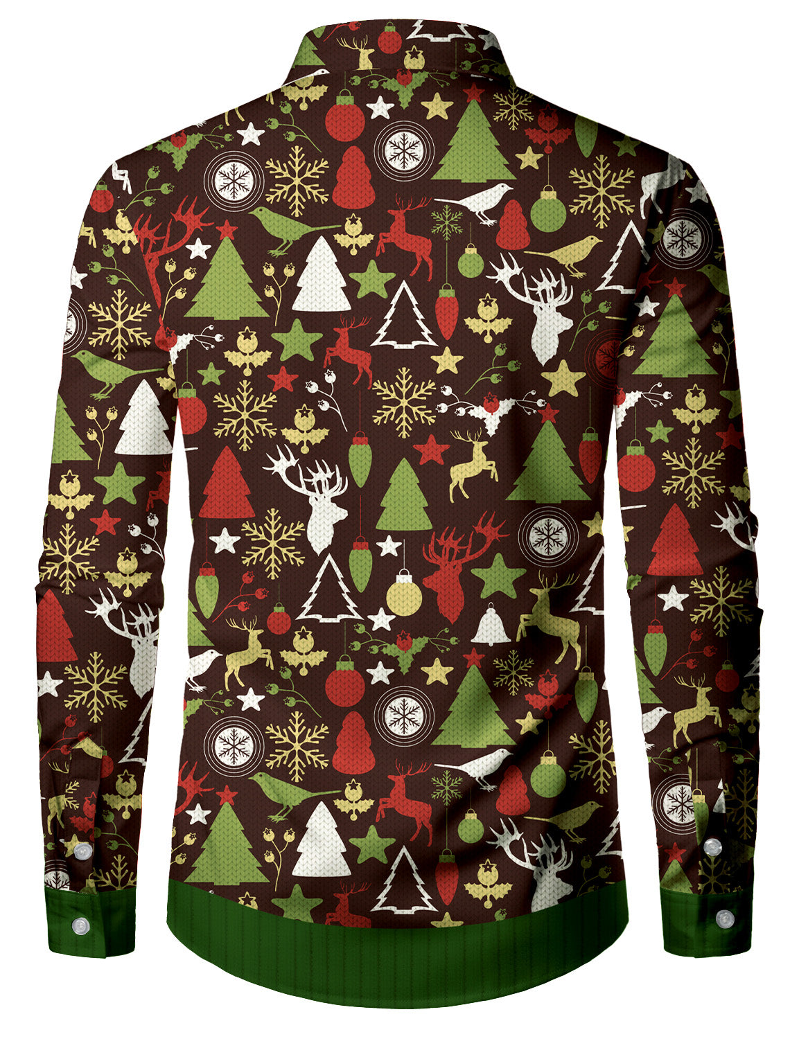 Men's Christmas Holiday Reindeer Xmas Party Long Sleeve Shirt