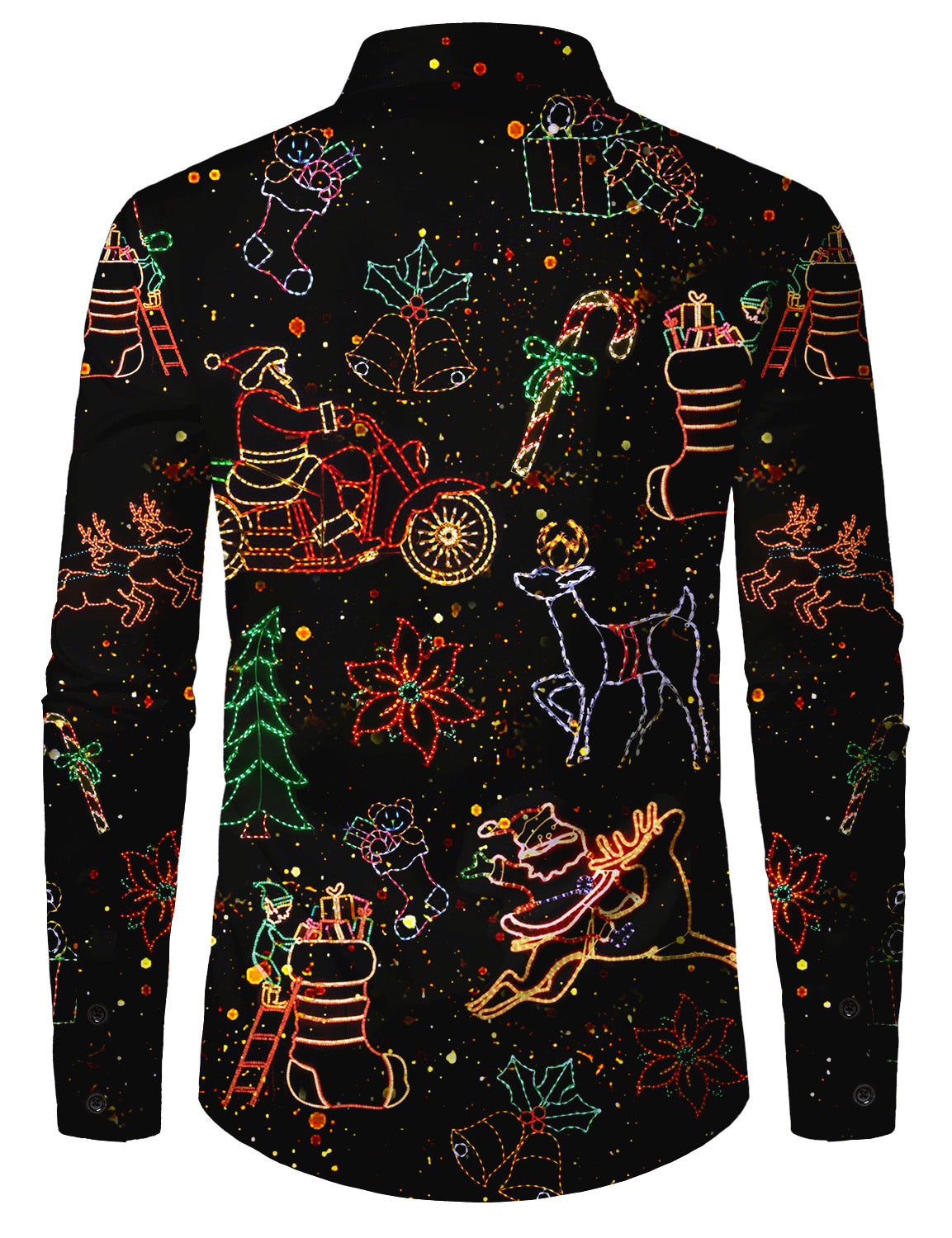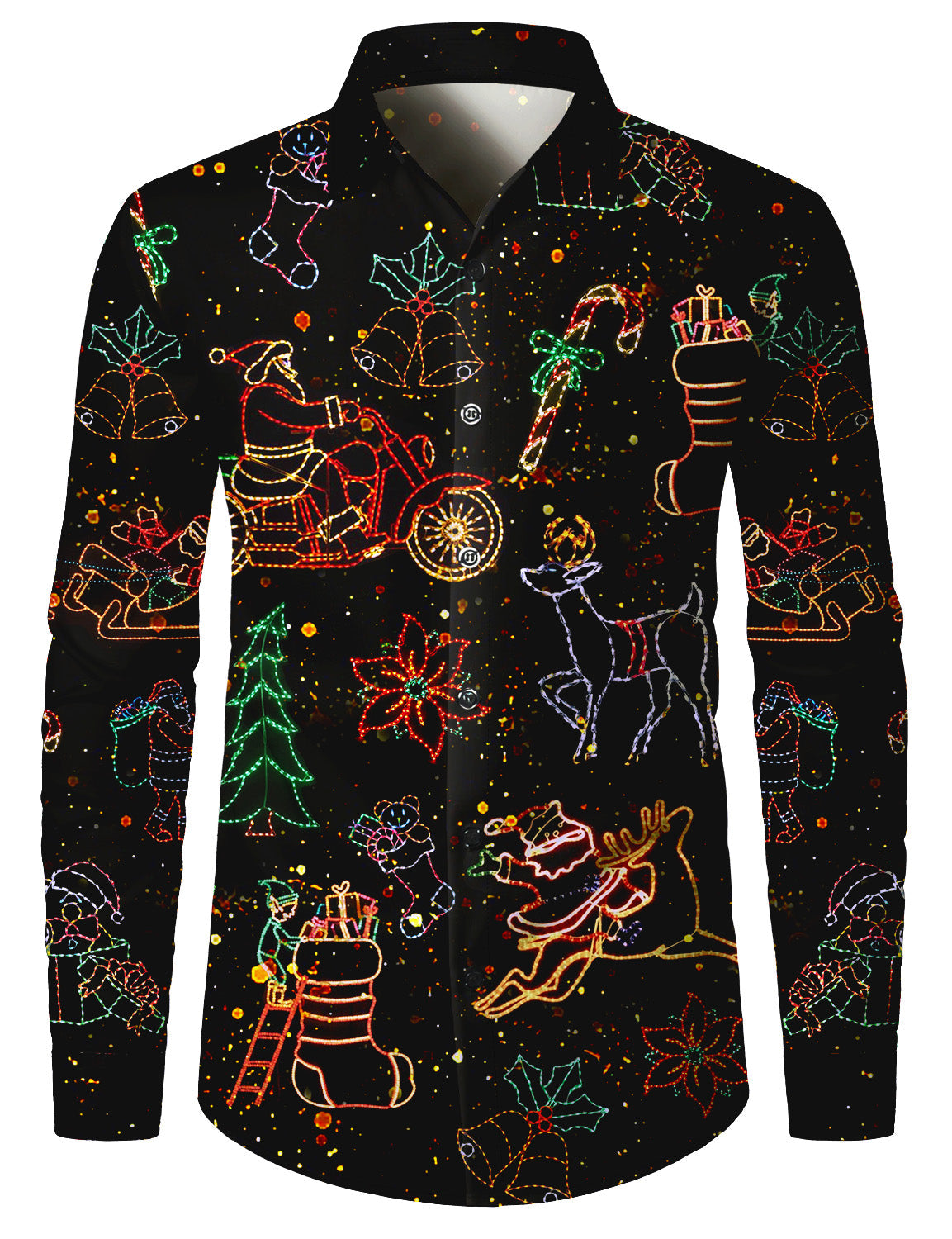 Men's Christmas Lights Print Funny Long Sleeve Shirt