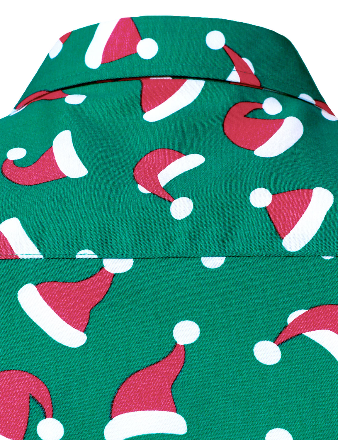 Men's Christmas Santa Hat Print Green Long Sleeve Shirt