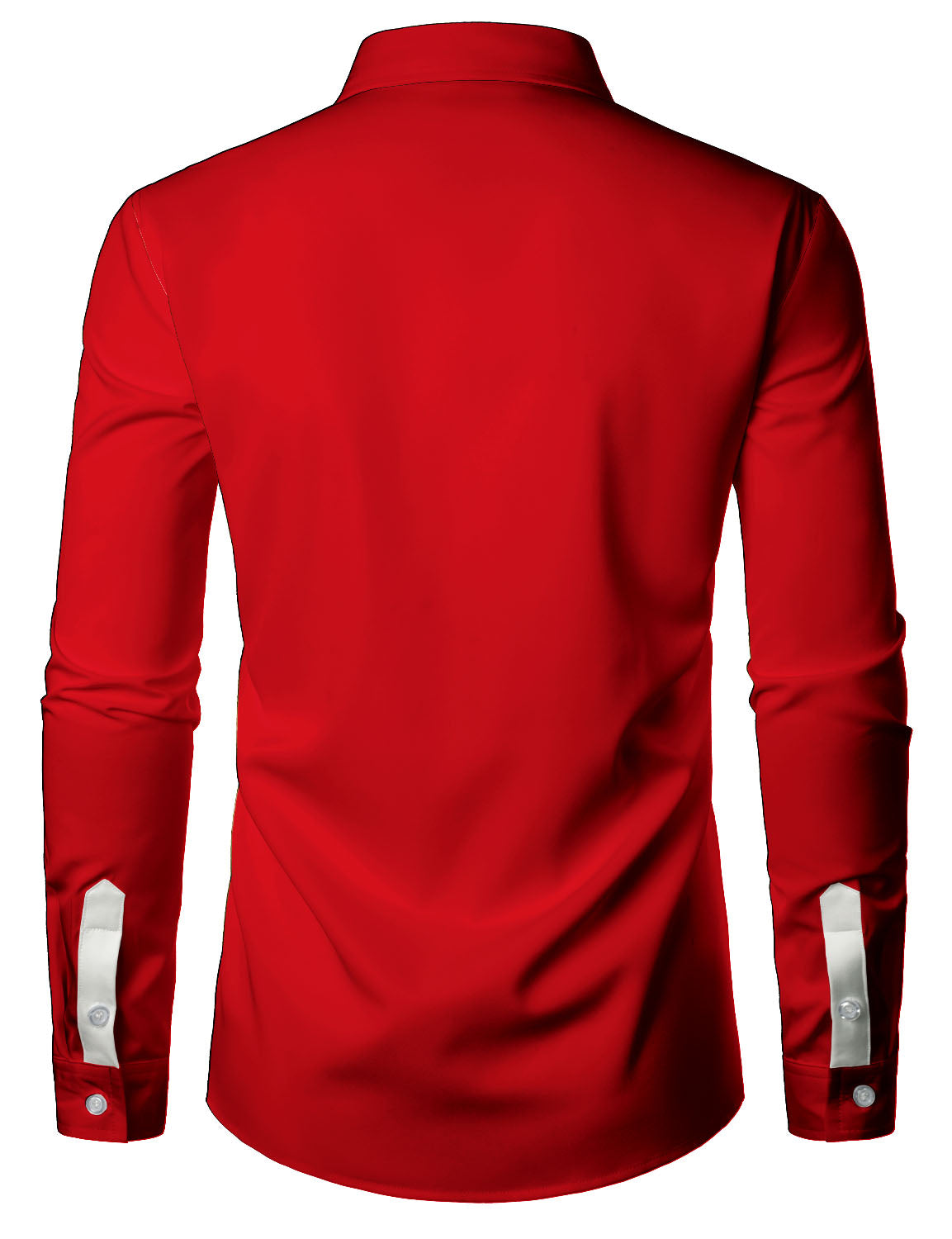Men's Christmas Long Sleeve Xmas Party Holiday Cotton Shirt Red