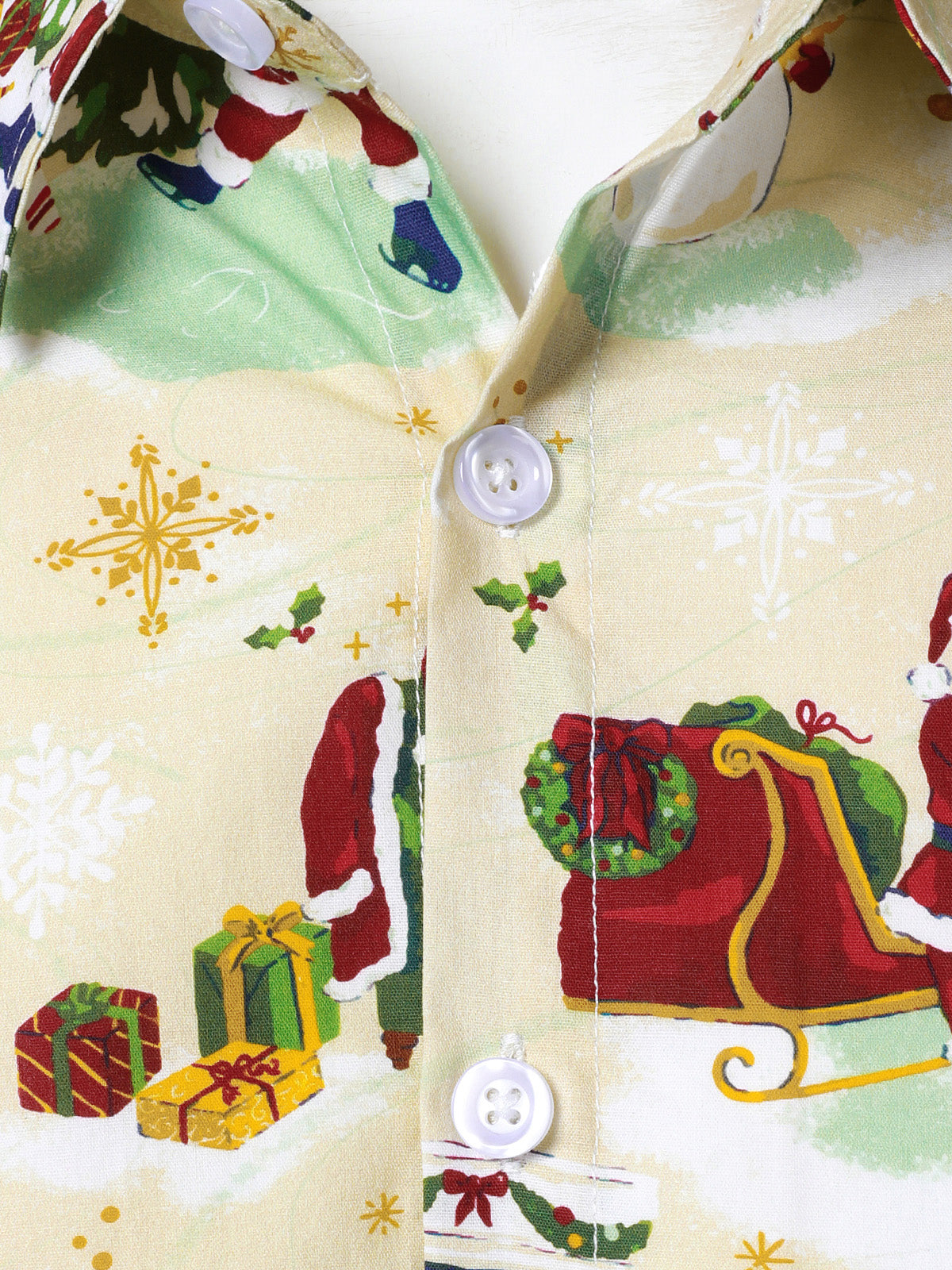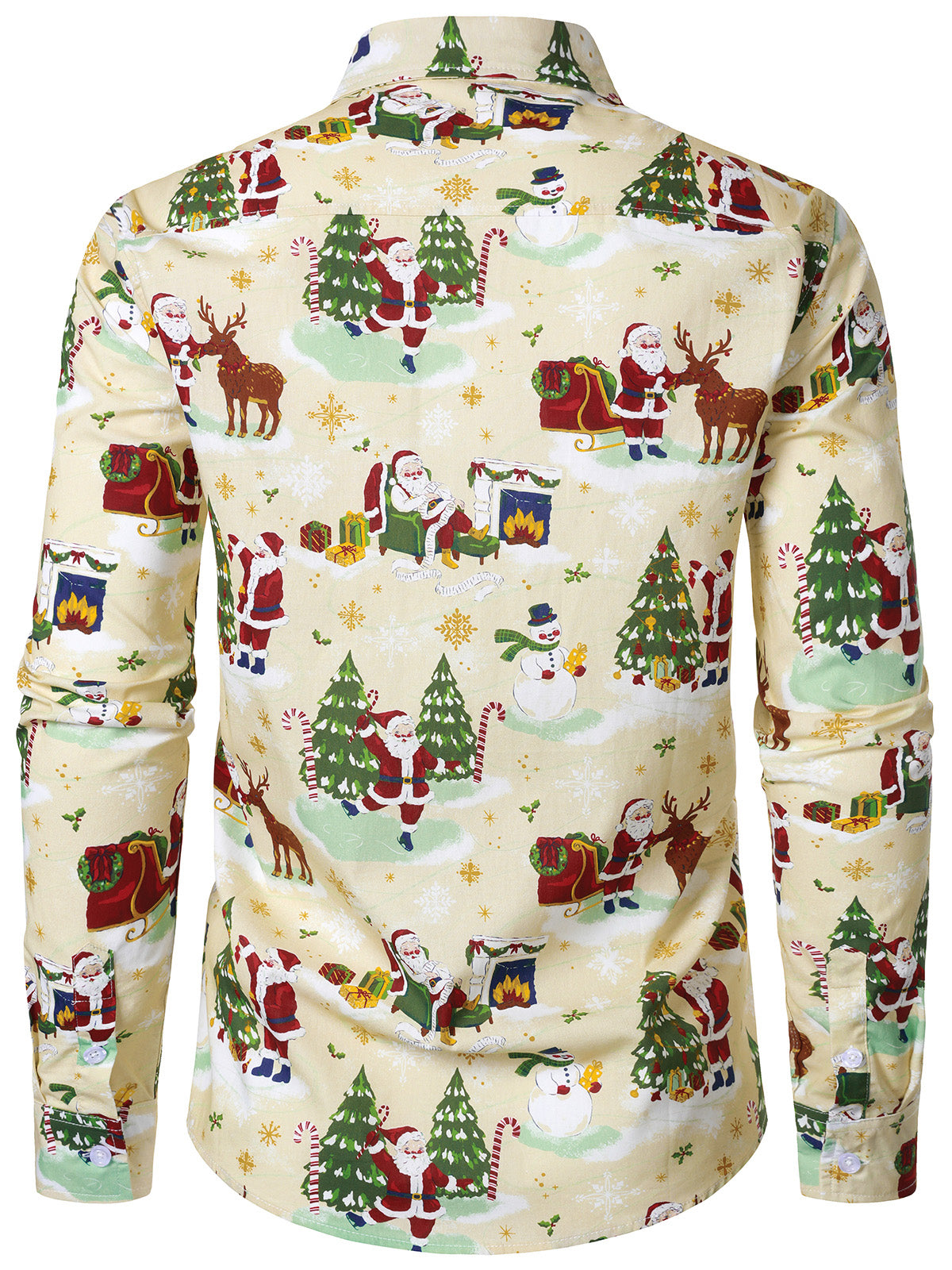 Men's Vintage Santa Claus Print Cotton Long Sleeve Shirt