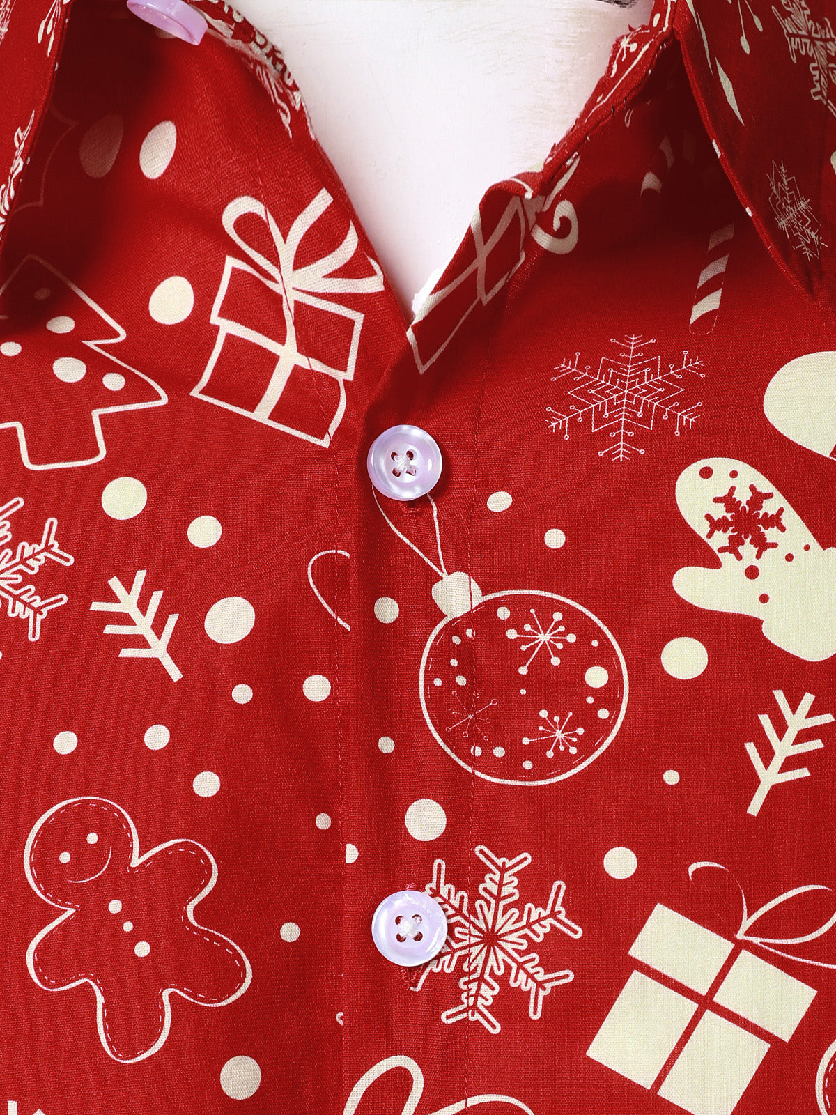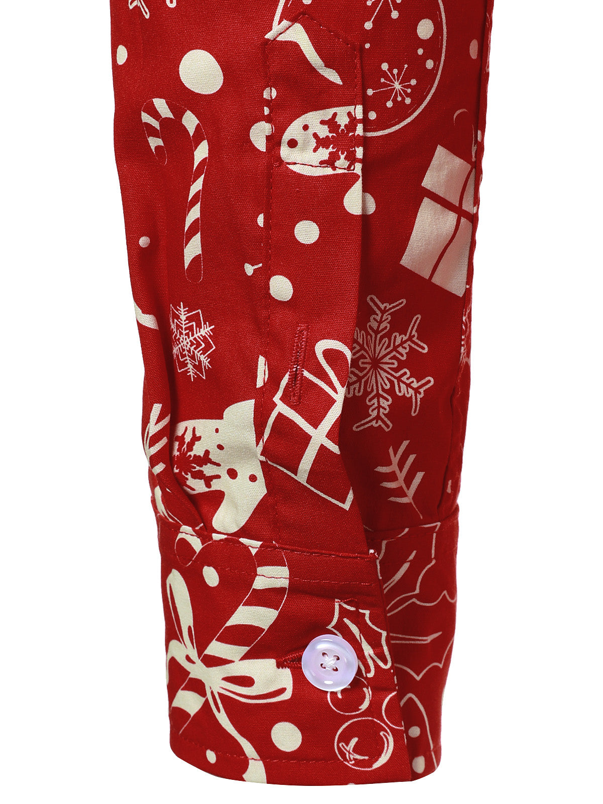 Men's Christmas Themed Holiday Red Long Sleeve Shirt
