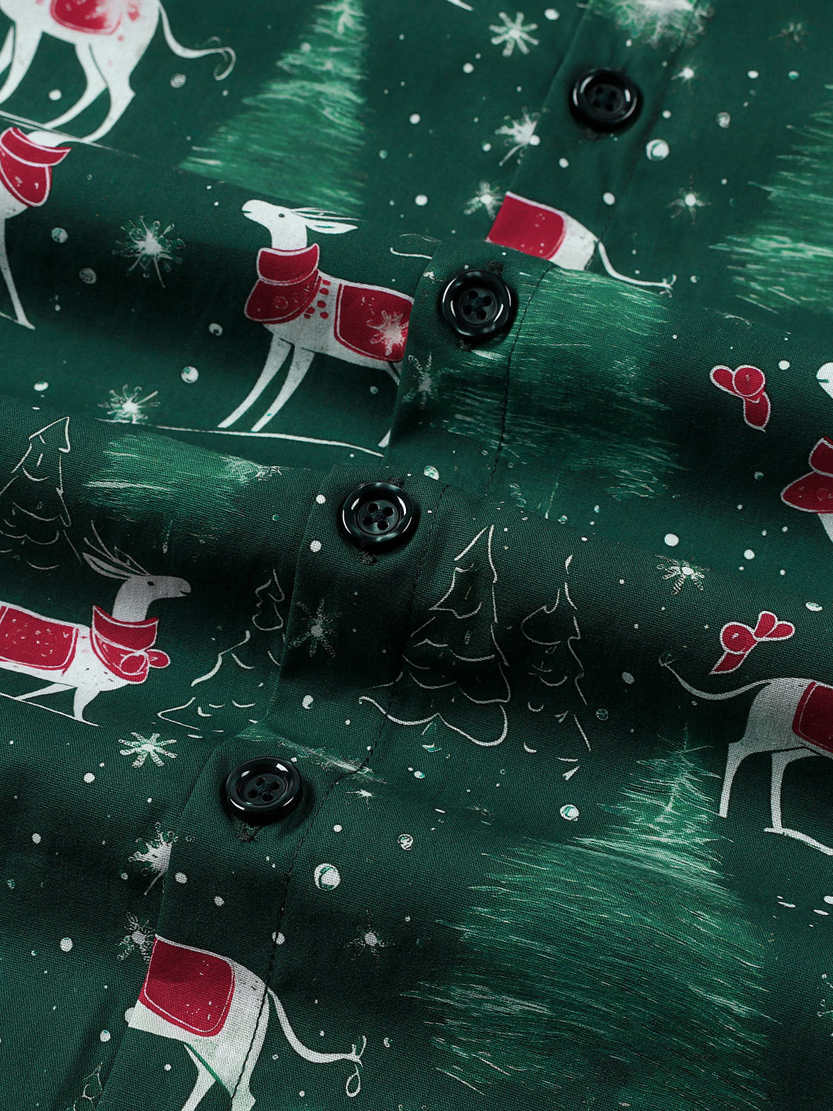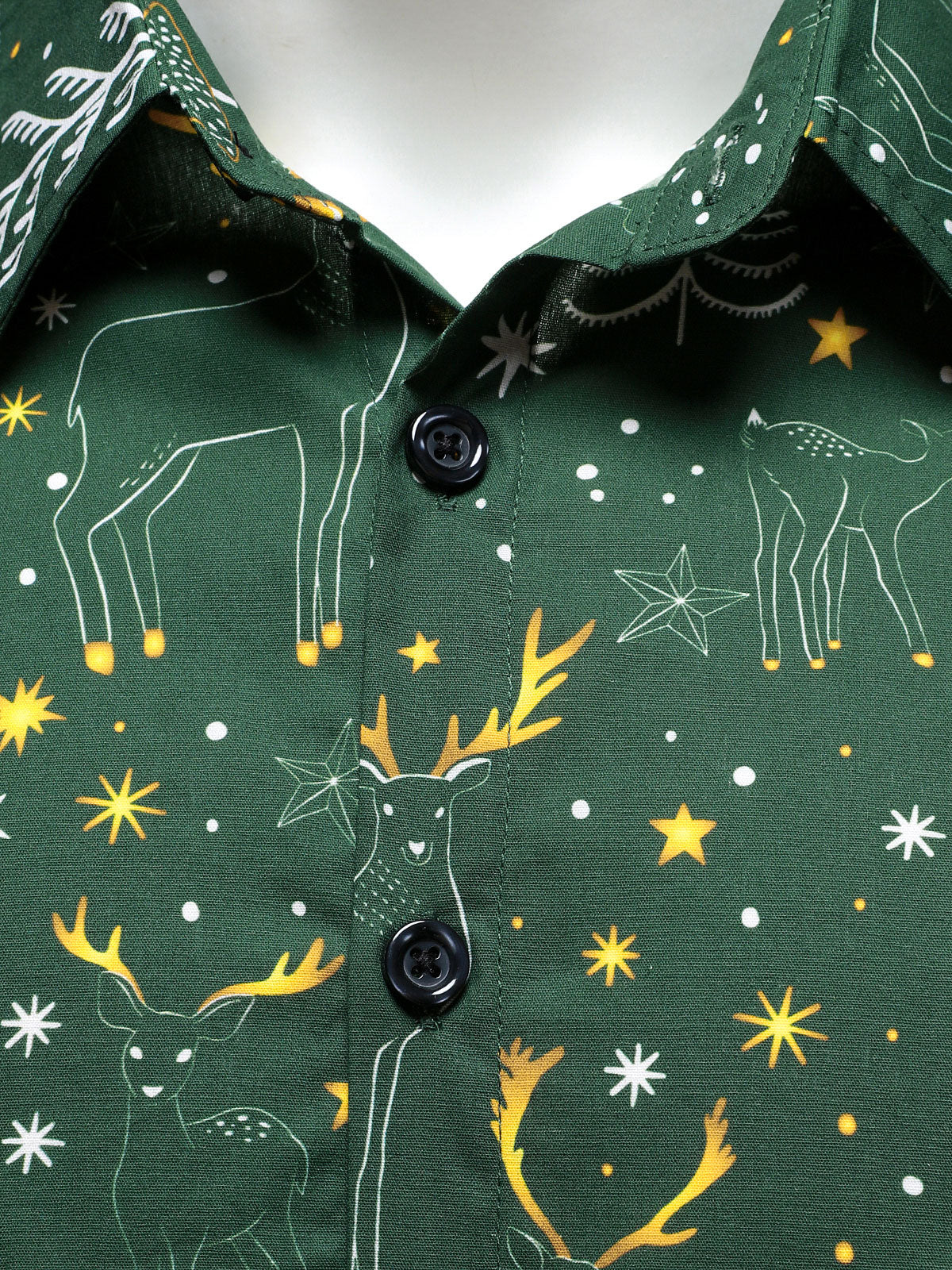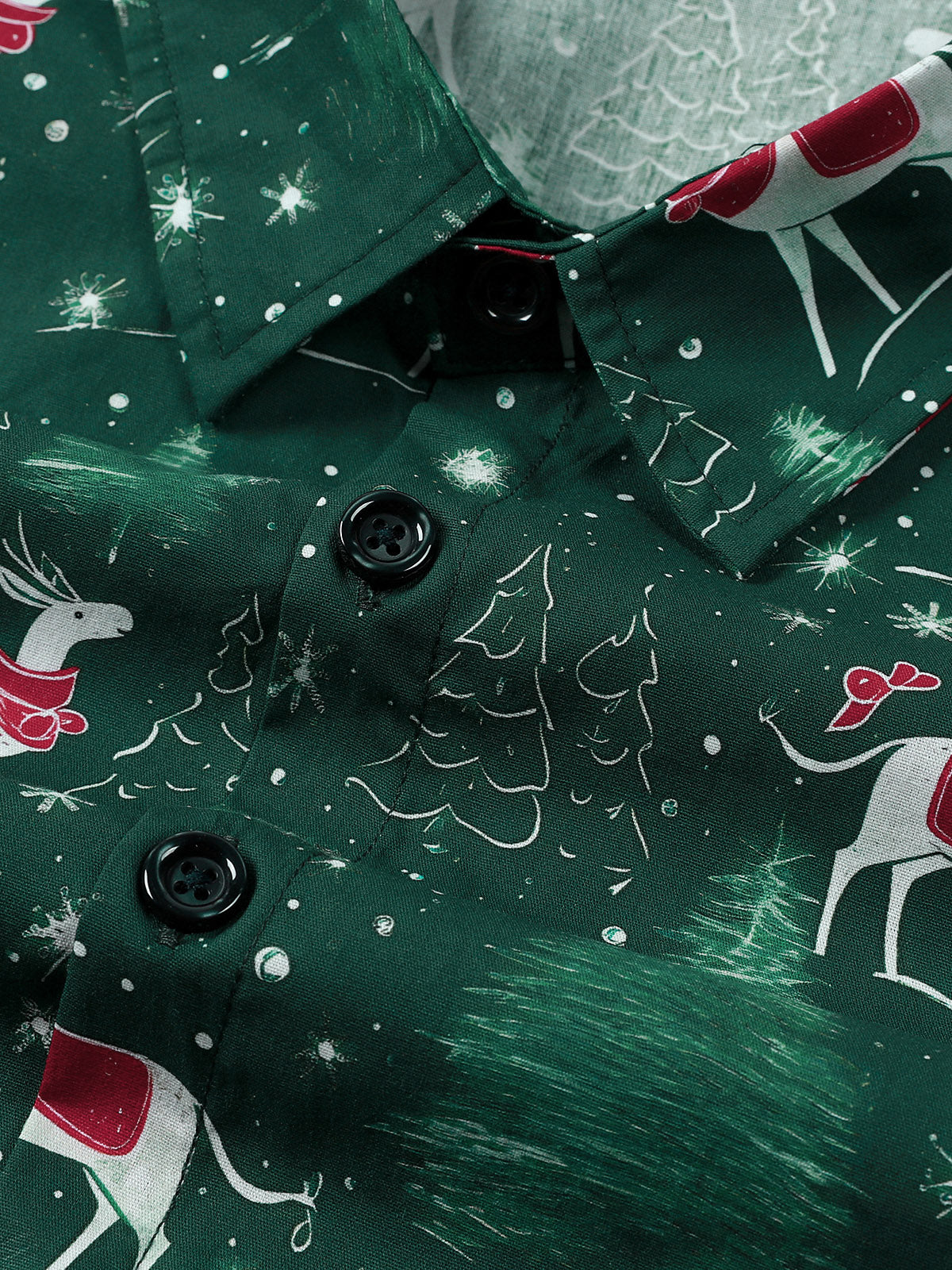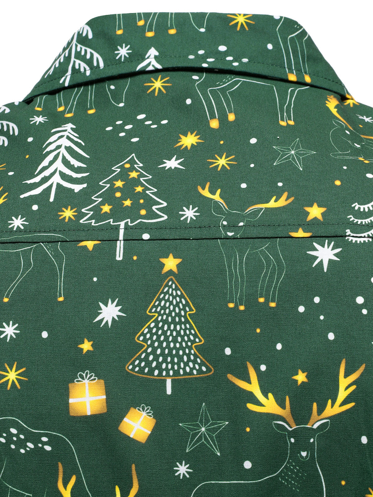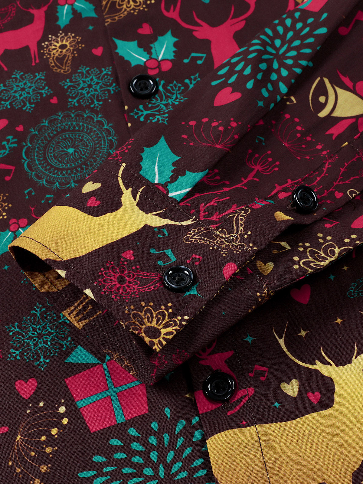 Men's Christmas Tree Reindeer Print Long Sleeve Cotton Shirt