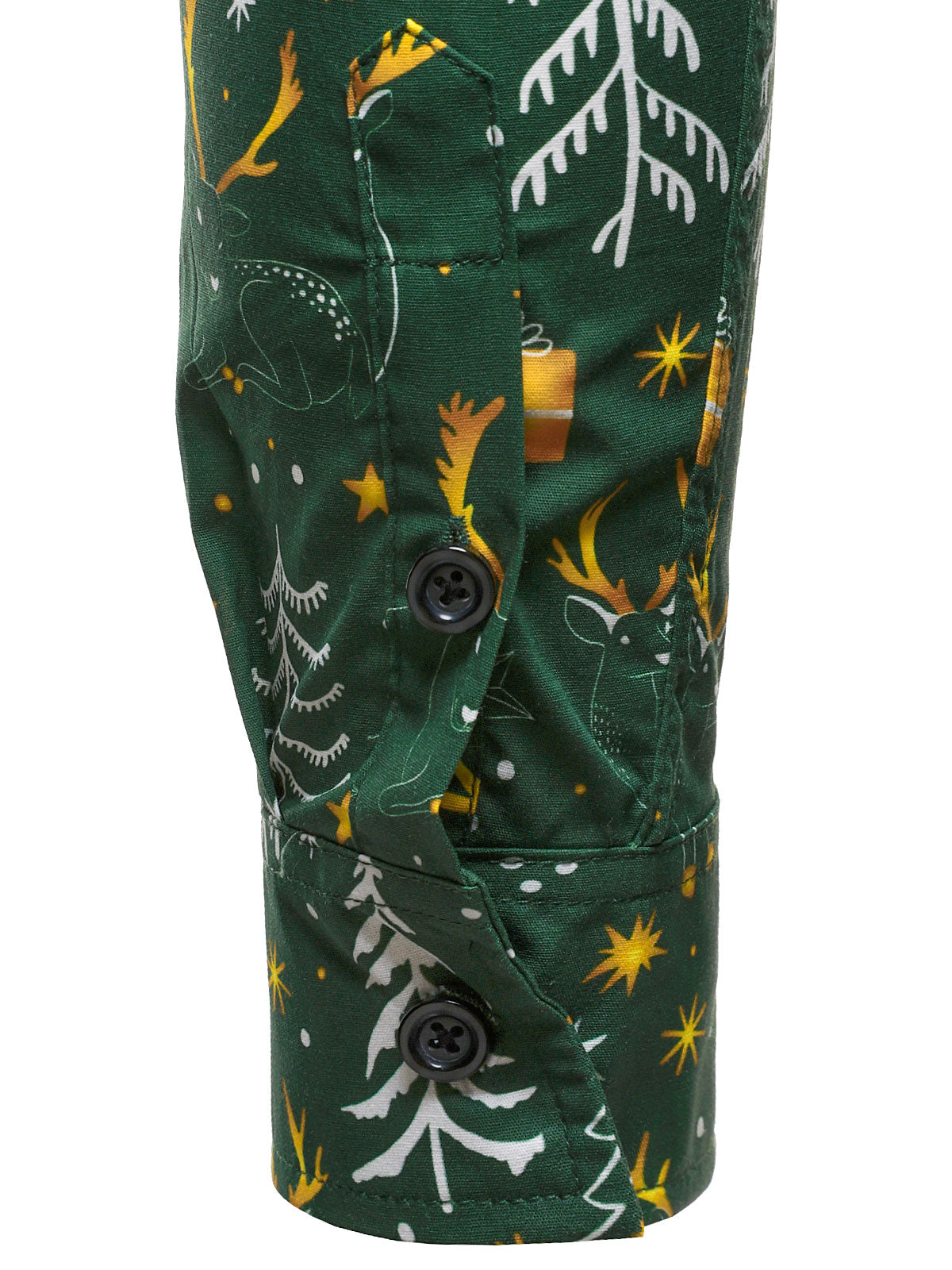 Men's Cotton Green Christmas Long Sleeve Shirt