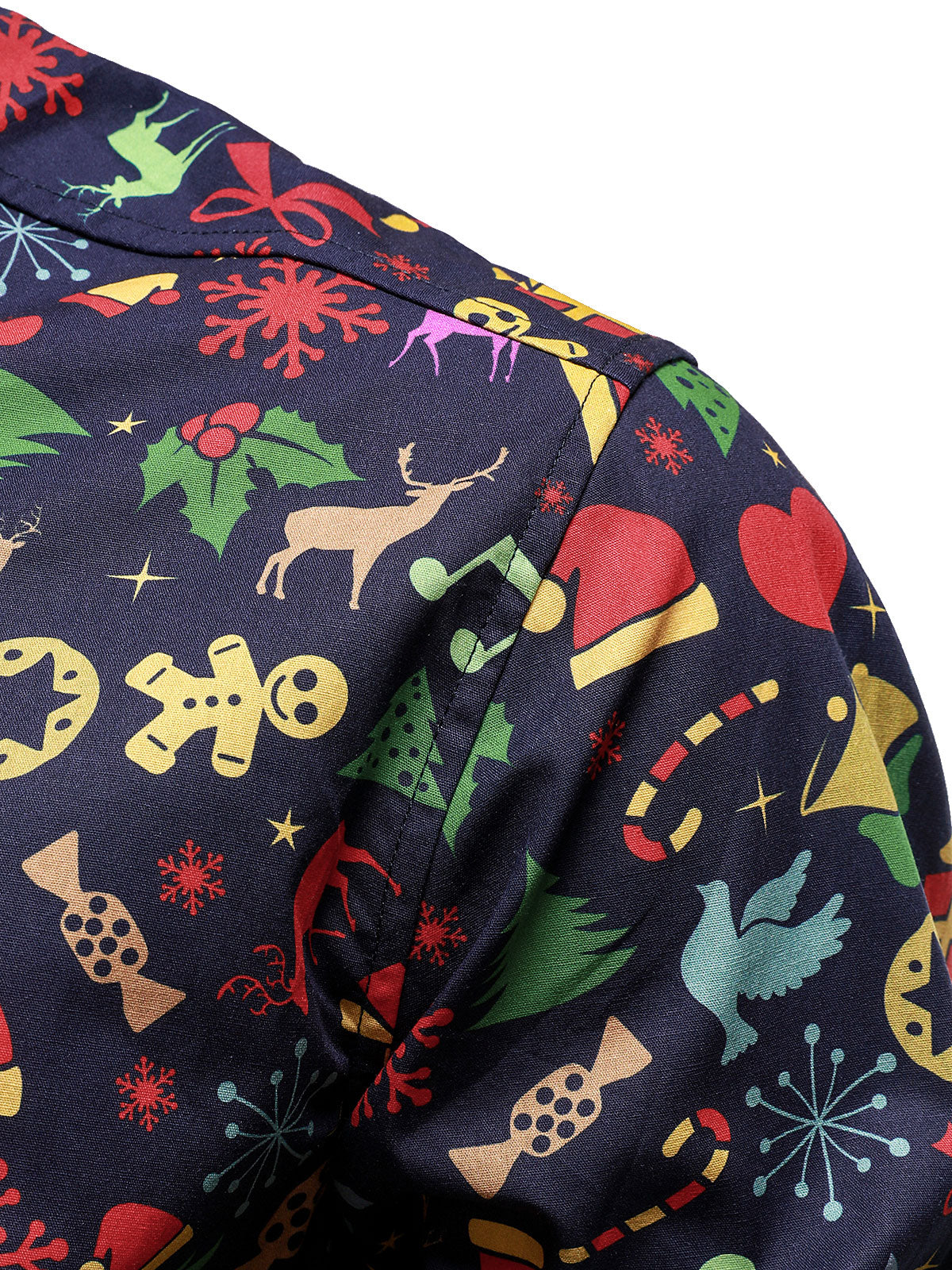 Men's Christmas Themed Festive Prints Navy Blue Long Sleeve Shirt
